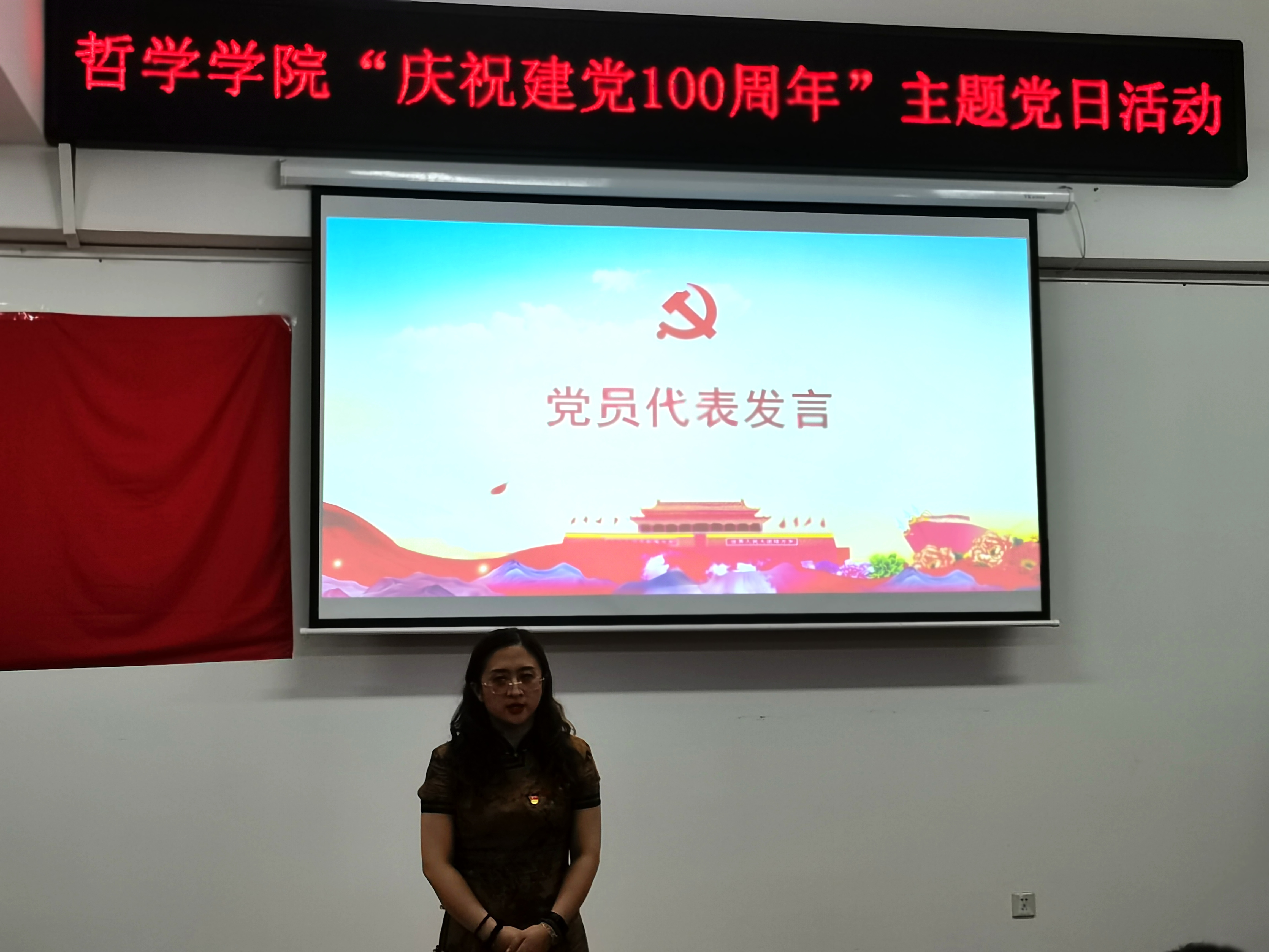 面向全体教师党员组织开展“庆祝建党100周年”主题党日活动,歌颂党的百年光辉历程,激励广大党员努力奋进,开启新征程。活动由学院党总支书记孙美晖主持。