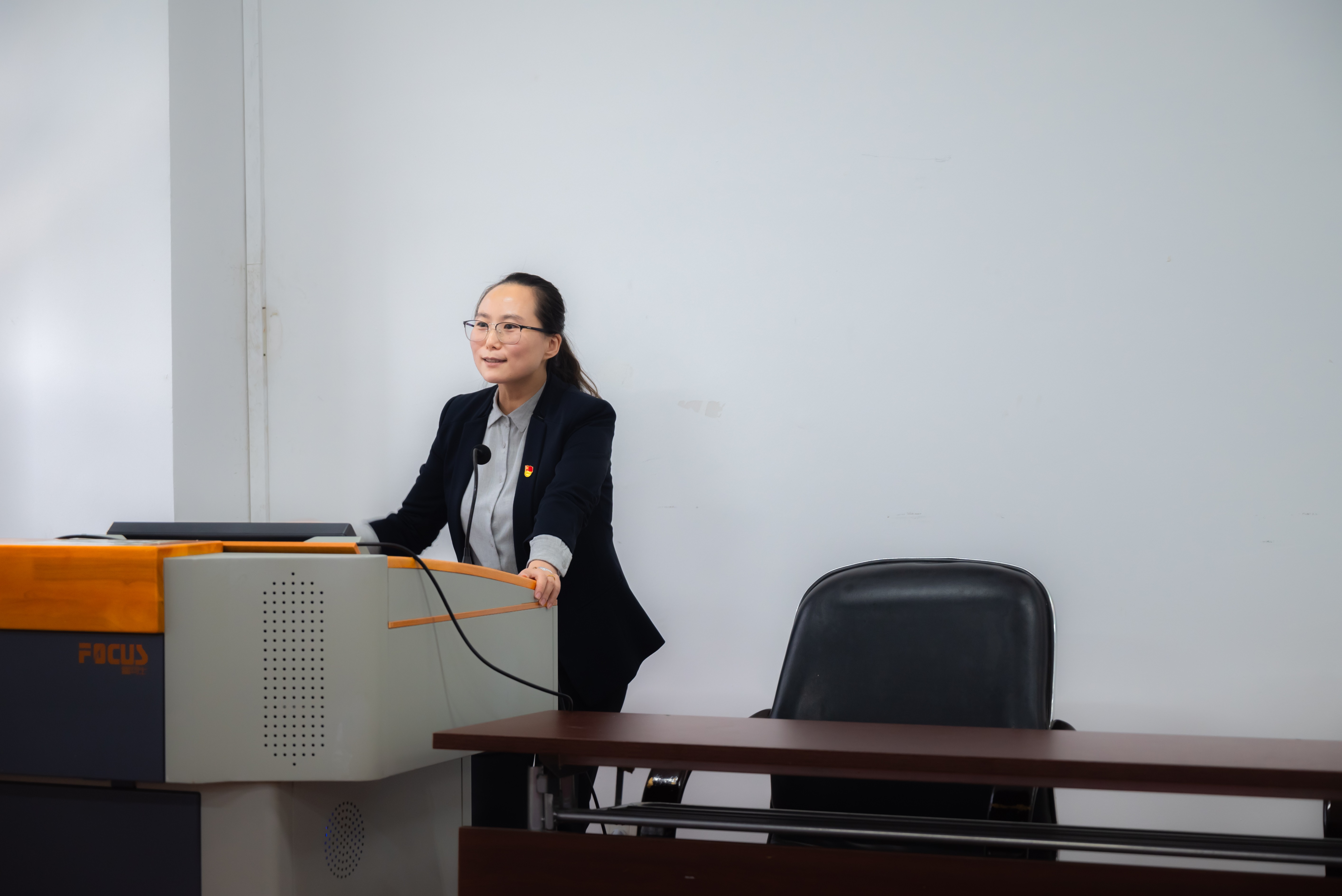 于汇文楼937室开展2021级新生入党启蒙教育第二讲,学院党总支秘书黄影担任主讲、辅导员焦瑞、2021级全体新生全体出席。