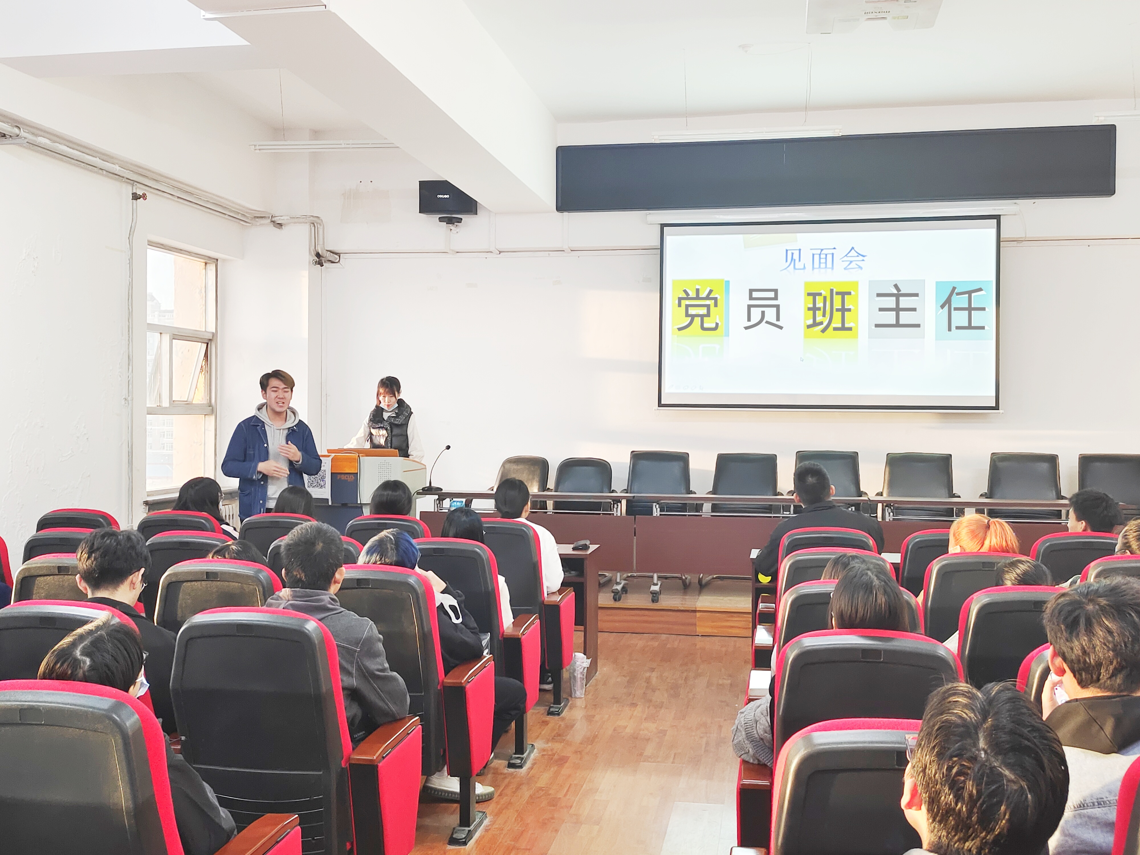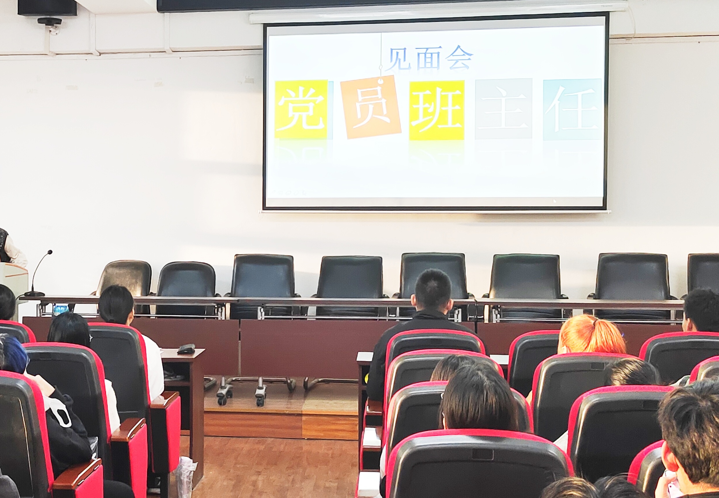 于汇文楼937室报告厅举行新生党员班主任见面会,会议由新生辅导员焦瑞老师主持,全体新生积极参加。