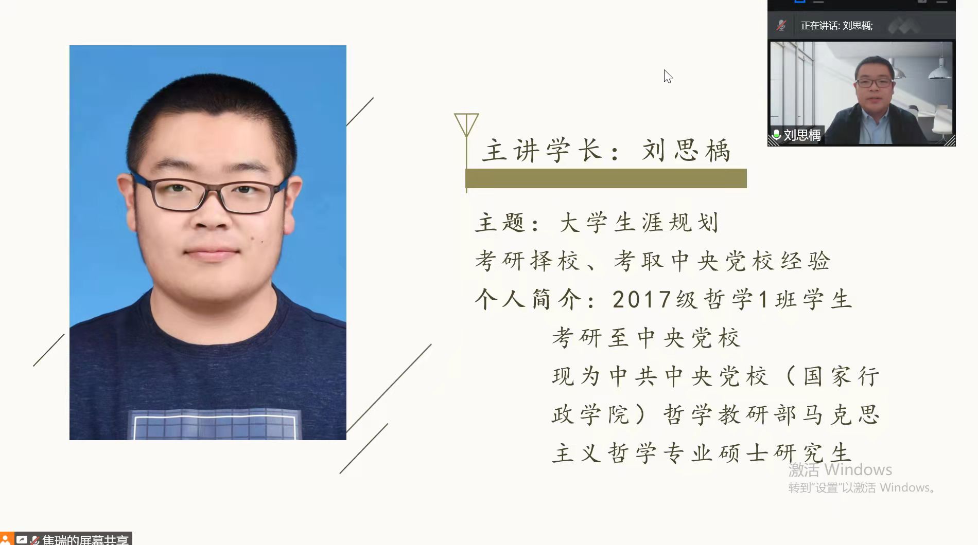 接下来,刘思楀学长为大家介绍了大学的生涯规划。他结合自身经验,在考研院校选择导向、高校选调生政策,以及考研参考书目等方面给予了同学们宝贵的经验指导。除此以外,学长强调了了性爱视频