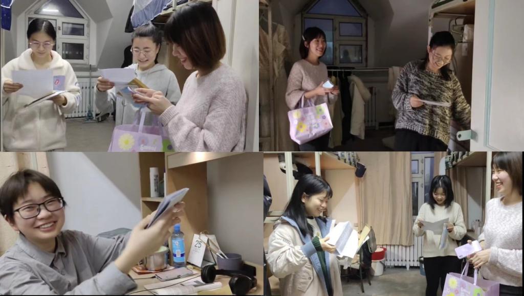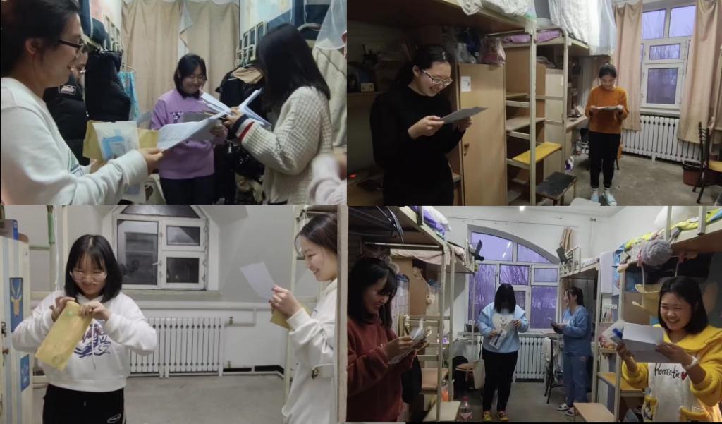 上一次相见还是夏山如碧,再奔赴相见便是白雪皑皑。背上行囊,步履坚定,坐上前行的火车,踏上征程......一转眼,21级的同学们离家在外已3月有余。当下,全校防疫,共克时艰,哲院师生,同心同德,为减少疫情给同学们带来的困扰与紧张,安抚同学们对父母对家人的思念,21级辅导员焦瑞老师开展了“走访寝室送家书”暖心活动,焦老师悄悄为大家准备了一份珍贵的礼物——父母手写信,家长们手写拍照发给焦老师,焦老师逐一整理打印装进信封。12月10日,焦老师走访寝室,为同学们送了一些防疫用品,同时,把珍贵的家长手写信递到了同学们手中,为大家带来父母的叮咛、嘱托与爱。