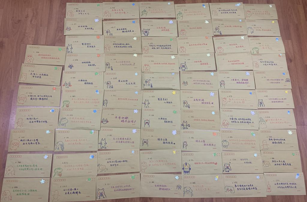 见字如晤,信展颜舒。同学们在拆开信封的那一刻充满了喜悦,原来,这是一份意义特别的礼物,一个个画着可爱漫画的信封里,是家长们亲手写给孩子们的信。手写信是这个时代的奢侈品,而这封来自家长的信显得更加珍贵。一封封的手写信让大家在这个疫情肆虐的寒冬感受到了家的温暖。