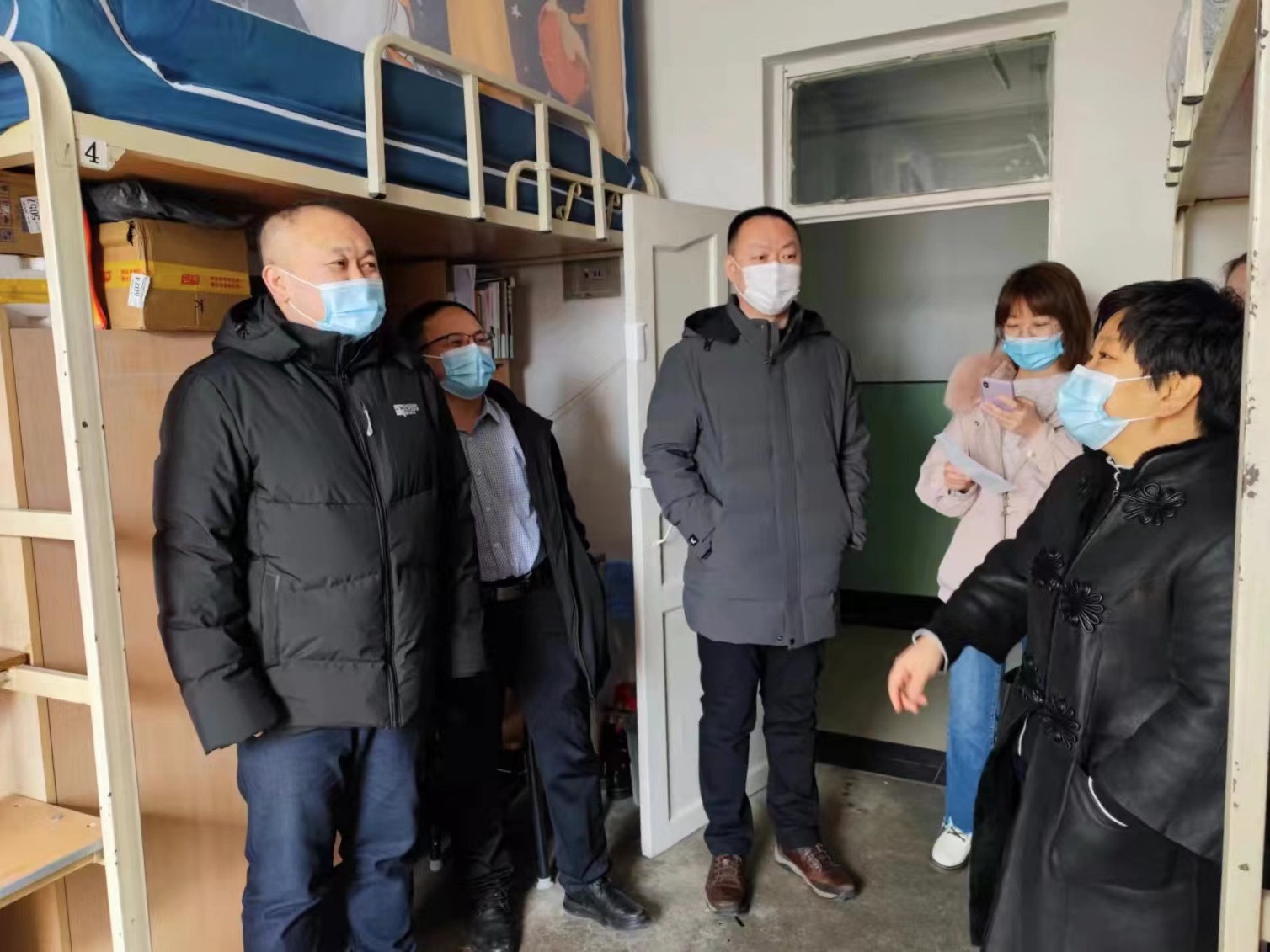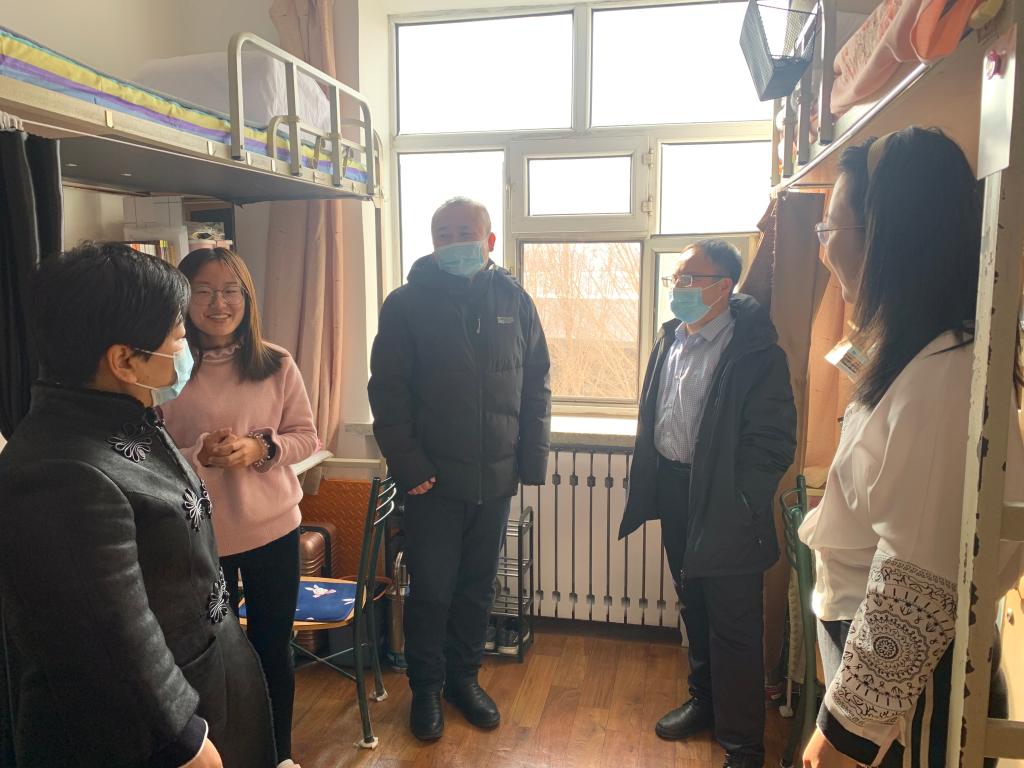 孙美晖书记、蒋红雨院长、张丽丹副书记、周来顺副院长、高来源副院长,以及辅导员焦瑞一行走访学生寝室,送去温暖与关怀。