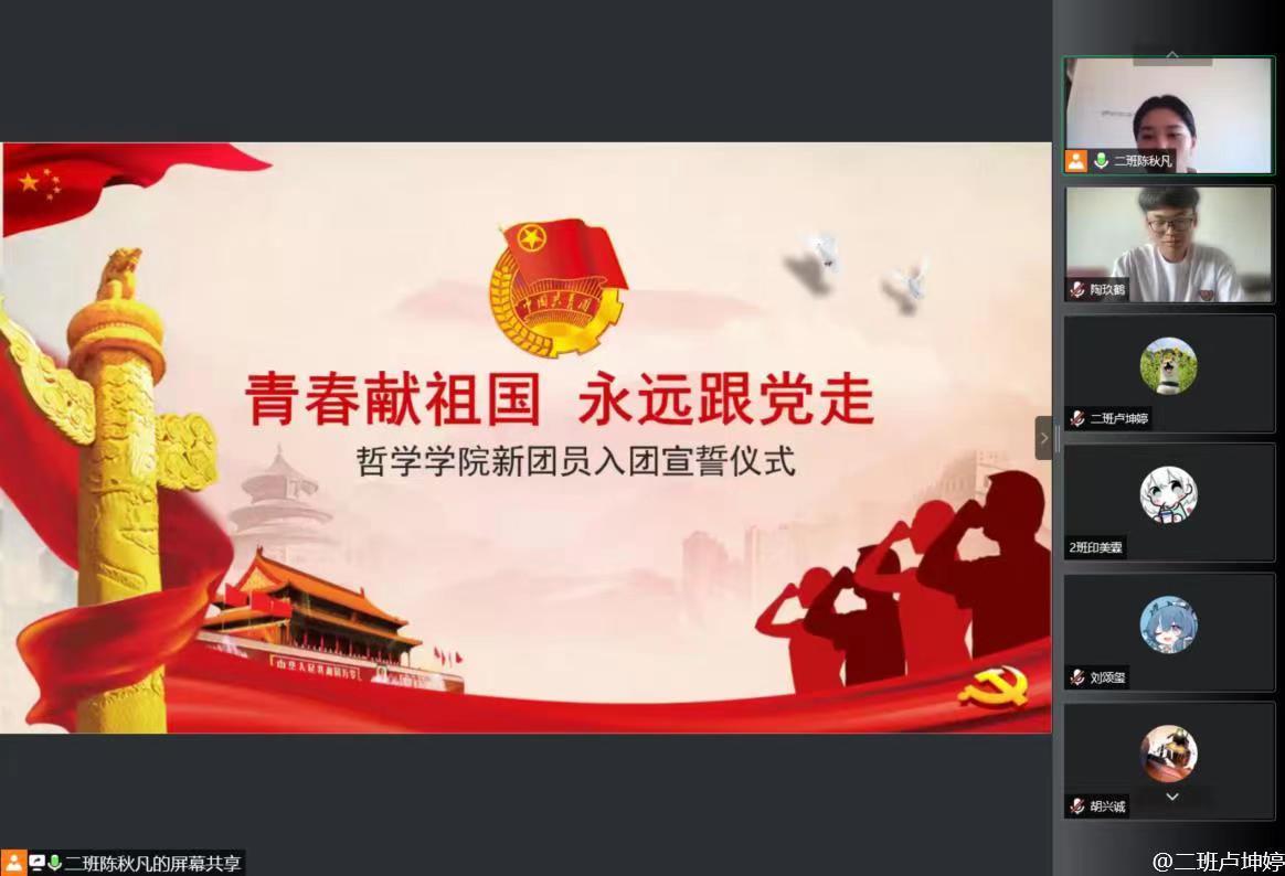 于2022年6月9日下午线上召开新团员入团仪式。本次仪式由21级哲学二班团支书陈秋凡主持,性爱视频