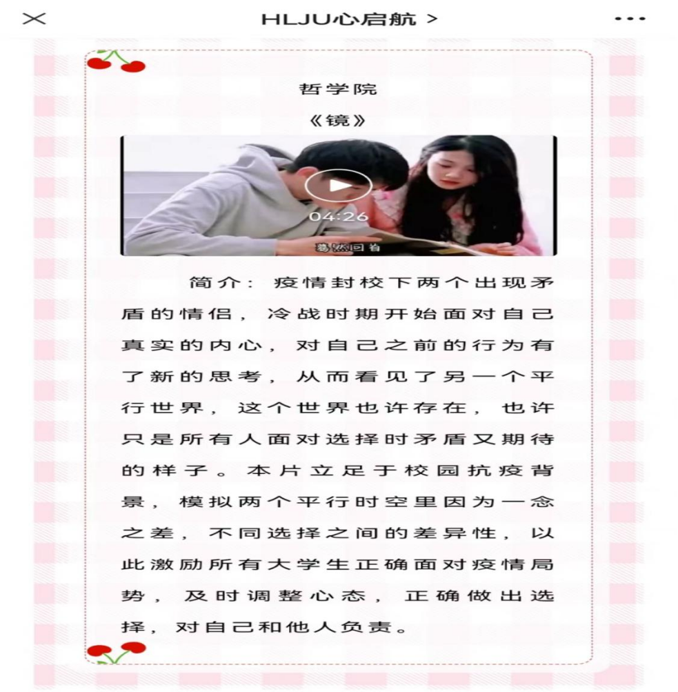 影动心声,“疫”路同行。为加强疫情期间心理健康教育知识的宣传和普及,全面提高同学们战胜疫情的信心决心,培养学生疫情期间理性平和、乐观向上的积极心理品质,积极响应校学生工作部心理健康教育中心的号召,征集“万众一心,共战‘疫’情”心理微电影(微视频)作品,同学们用微电影传递青春正能量,展现新时代青年大学生的责任与担当,性爱视频