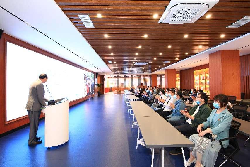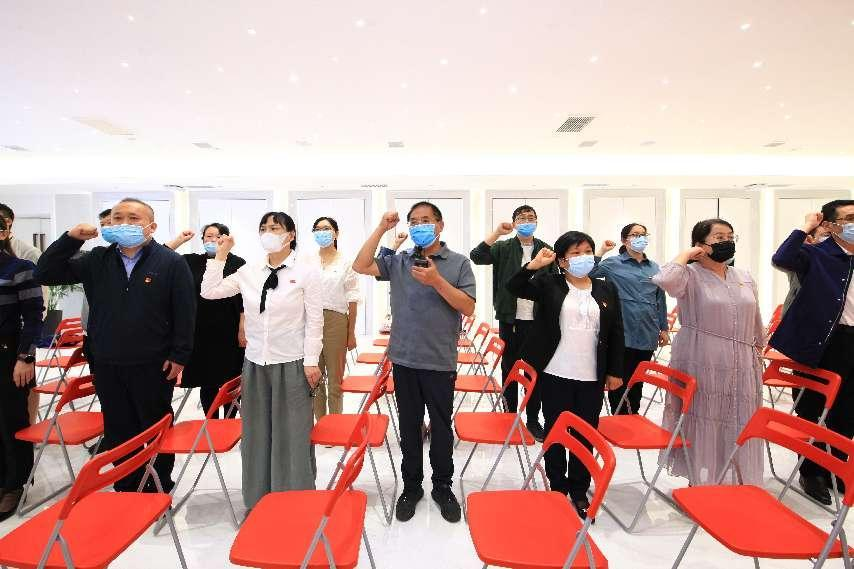 在“中国共产党人精神谱系”主题教室。通过听历史的声音,时代的声音,聆听总书记的声音,穿越时空隧道,教师们感受不同时期的百种精神情境,在光影交错中体味理想的崇高,在历史回眸中传递信仰的力量。在这里学院教师重温入党誓词,重温入党初心。