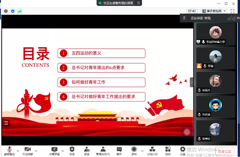 学生工作队伍以能力作风建设为契机,于6月29日集中学习了《习近平在纪念五四运动100周年大会上的讲话》,学史明理,学史崇德,学史增信,学习五四精神,弘扬光荣传统,赓续红色血脉,提高能力作风。性爱视频