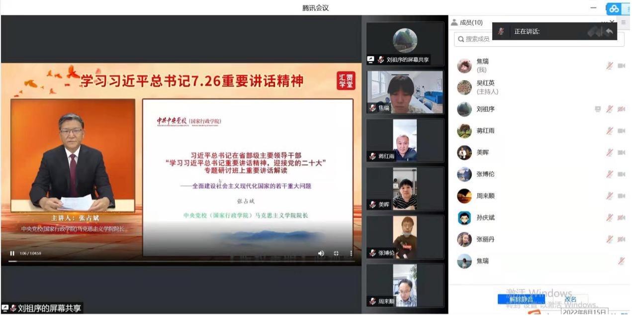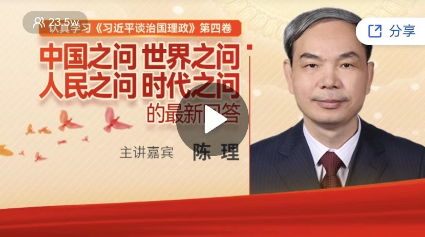 本次线上学习内容由第十三届全国政协委员张占斌教授主讲的“全面建设社会主义现代化国家的若干重大问题——《习近平总书记在省部级主要领导干部‘学习习近平总书记重要讲话精神,迎接党的二十大’专题研讨班上重要讲话解读》”和中共中央党史和文献研究院学术和编审委员会原主任陈理主讲的“ 中国之问、世界之问、人民之问、时代之问的最新回答——认真学习《习近平谈治国理政》第四卷”两部分组成。