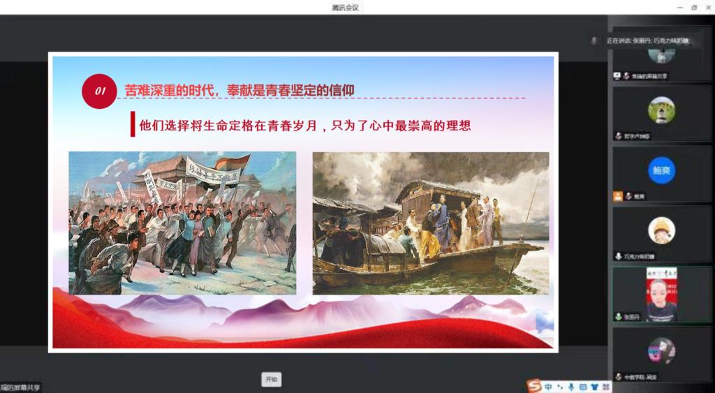 张老师从三部分进行了讲解,第一章节主题为“奉献是青春坚定的信仰”。一百年前,风雨飘摇,䘮权辱国,那时的青年依然满腔热情,追求真理,探寻光明,拯救祖国于水火之中。在他们选择将生命定格在青春岁月,只为了心中最坚定的信仰。毛泽东、周恩来、陈延年等英雄先烈甘于奉献、敢于牺牲,抛洒热血,为中国革命披肝沥胆,拥有了波澜壮阔的奋斗征程。