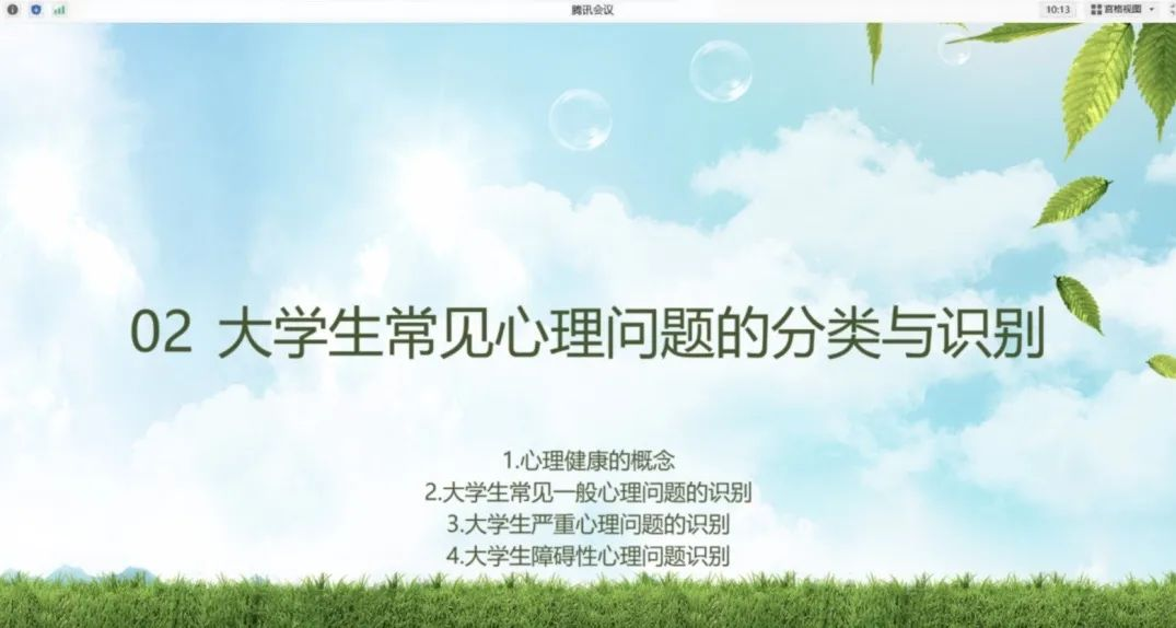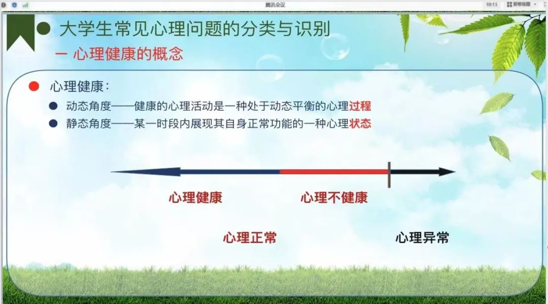 第二方面,大学生常见心理问题的分类与识别。主要讲解了心理健康的概念、大学生常见一般心理问题的识别、大学生严重心理问题的识别、大学生障碍性心理问题识别。焦老师对大学生常见的心理问题进行了分类讲解,讲解如何区分正常与异常的心理状态,以及如何切实预防干预学生心理危机等常识,使心理联络员切实的收获到了许多心理方面的知识。