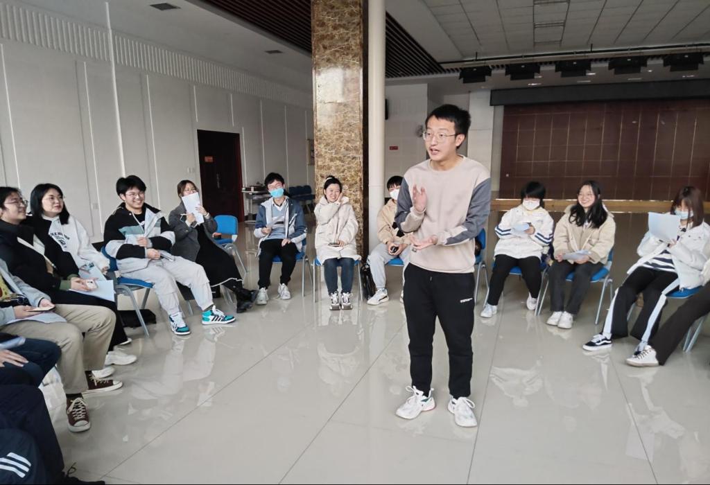 怀报壮志抒怀抱 新生萌芽畅新声。焦瑞老师说明了此次活动的目的和意义,并对此次团体心理辅导的活动流程进行了介绍,希望同学们畅所欲言、积极参与,班级的氛围逐渐活跃,团体活动也以轻松愉快的形式陆续展开,此次的活动共分为四个部分:
