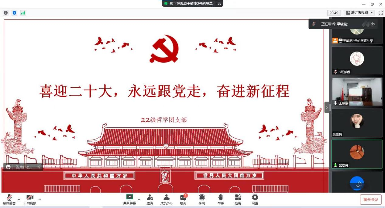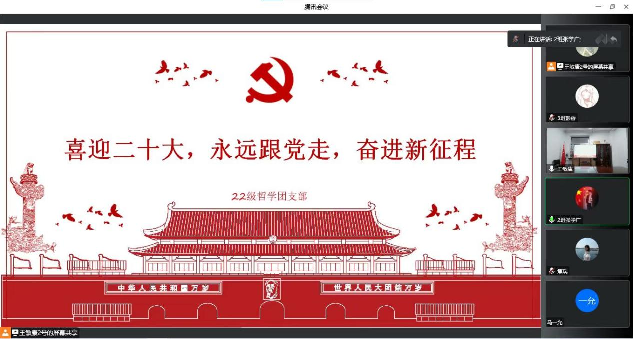 于2022年11月18日组织线上“学习二十大 永远跟党走 奋进新征程”的主题团日活动,此次团日活动2022级辅导员焦瑞老师出席会议。