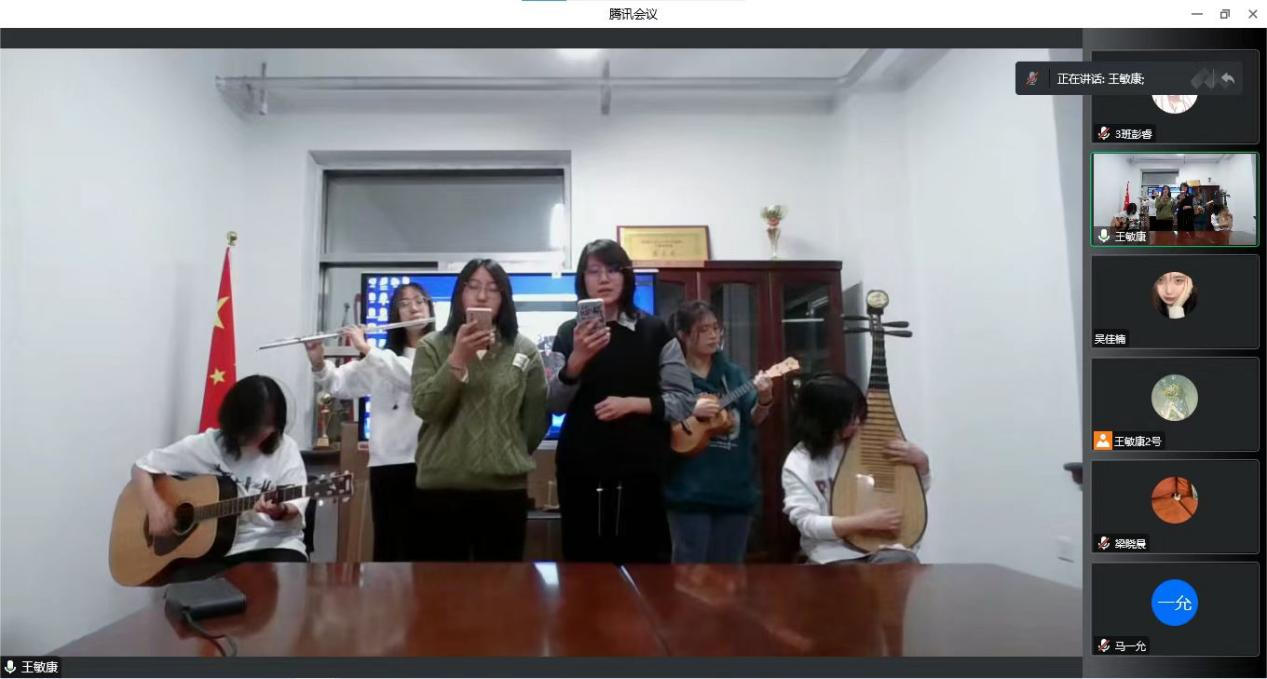 仰望星空,脚下已换了时空。朱婧瑄、王佳仪、刘卓炎、栾丰河、廖希甜、王雨桐几位同学用美妙的乐声,悠扬的歌声为我们带来了《错位时空》(五四特别版)。歌颂无数为新中国献身的革命先烈,这盛世,如您所愿。我们享受着先烈们披荆斩棘换来的幸福,革命先辈的努力没有白费,社会主义不会辜负中国。作为当代青年,我们也会继往开来,继承先人的精神,以青春之生命,延华夏之未来。