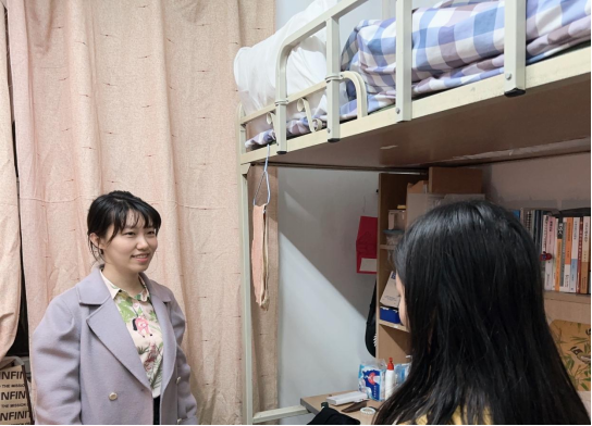 最后,各年级辅导员为了更好的关心同学们,在临近五一假期到来之际,走访各年级学生寝室,嘱咐各位同学在五一期间做好规划,安全出行,有任何突发情况要及时与学校和家长进行联系,做到安全时刻记心中。