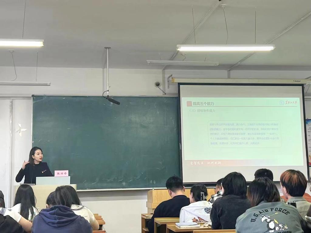 最后, 张老师以自己的亲身经历向广大学生党员和学生干部讲述了学生工作的重要性,指出学生党员和学生干部在学习和生活中要对广大同学起到带头和示范作用。要始终保持永不懈怠的精神状态和一往无前的奋斗姿态,必须以更高的境界,更强的本领,更优的作风,更好的精神状态,积极有效应对重大挑战,克服重大阻力,解决重大矛盾。