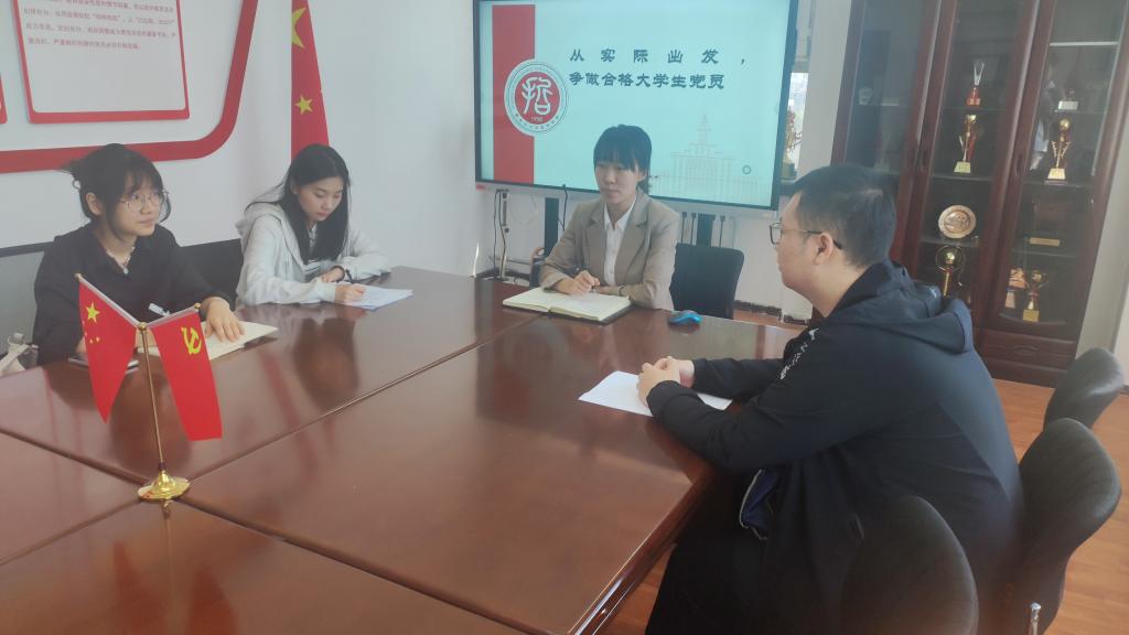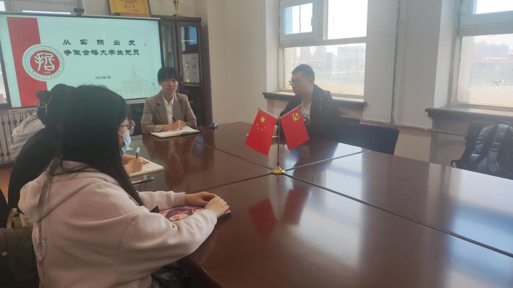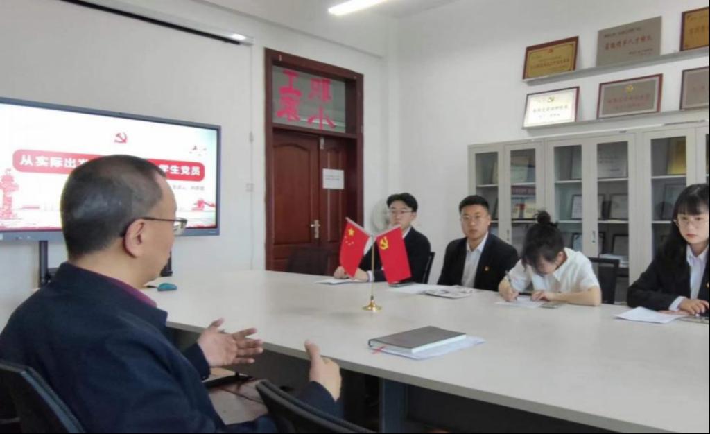 党总支副书记张丽丹、2019级辅导员孙庆斌、2020级辅导员张博伦、2021级辅导员焦瑞开展专题党课,22年下半年预备党员参加培训。