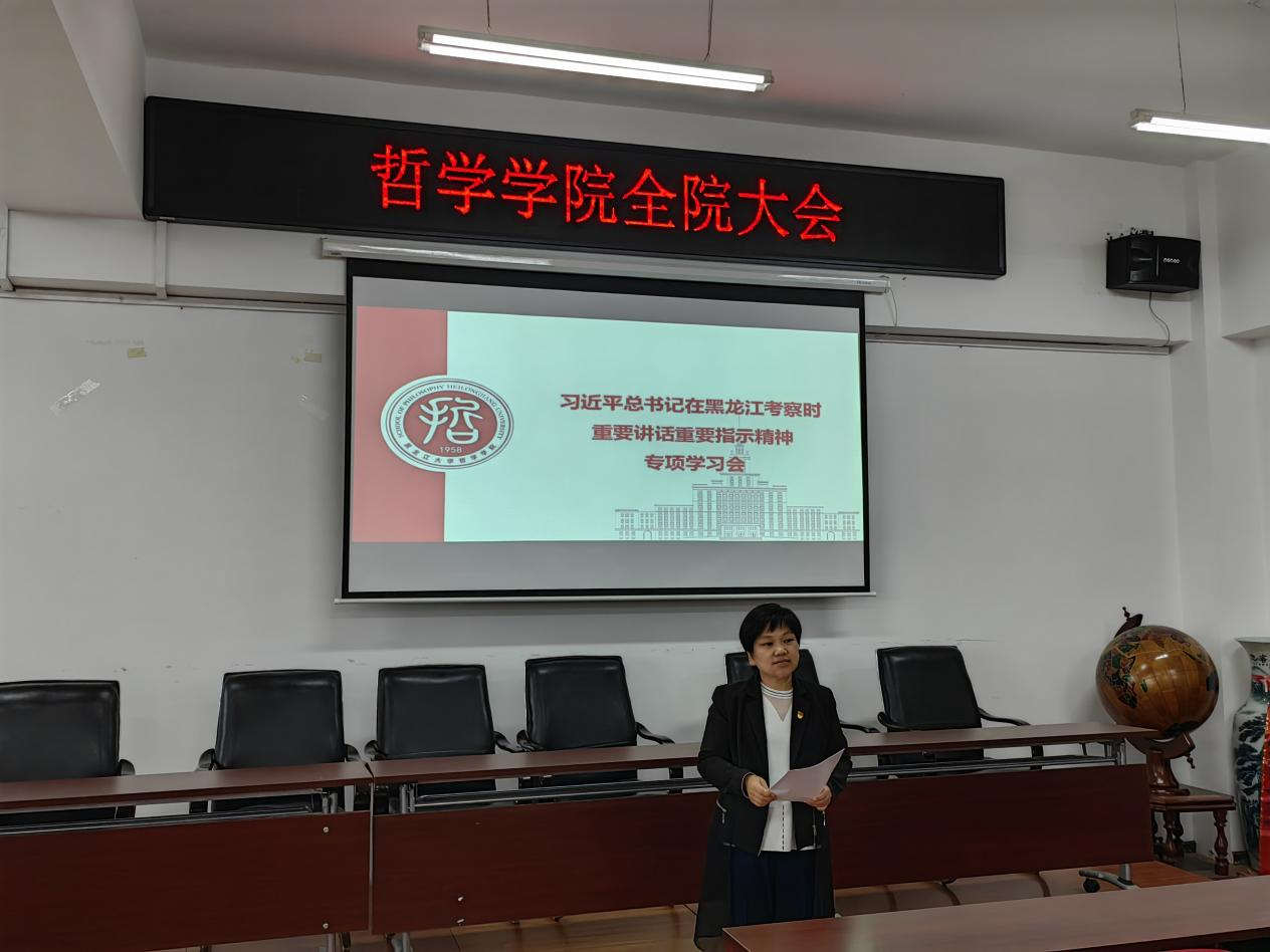 会上,全体教职工集中观看了记录习近平总书记赴黑龙江,开启今年第9次国内考察的新闻片:时政微纪录丨习近平总书记黑龙江行,直观了解总书记到黑龙江省大兴安岭、哈尔滨等地,深入林场、乡村、高校、受灾地区调研时的重要论述,认真学习新时代推动东北全面振兴座谈会讲话精神。习近平总书记考察黑龙江重要指示精神在全院引起热烈反响,充分激发了学院整体干事创业的激情,为践行立德树人根本任务指明工作方向。大家纷纷表示要将总书记关于教育、人才等方面的重要指示贯彻到底、落实到位,为建设教育强国、科技强国、人才强国奋力拼搏,为龙江高质量发展交出一份让党放心、人民满意的新时代哲学社会科学工作者新答卷。