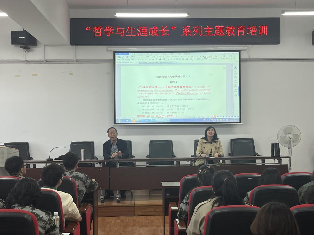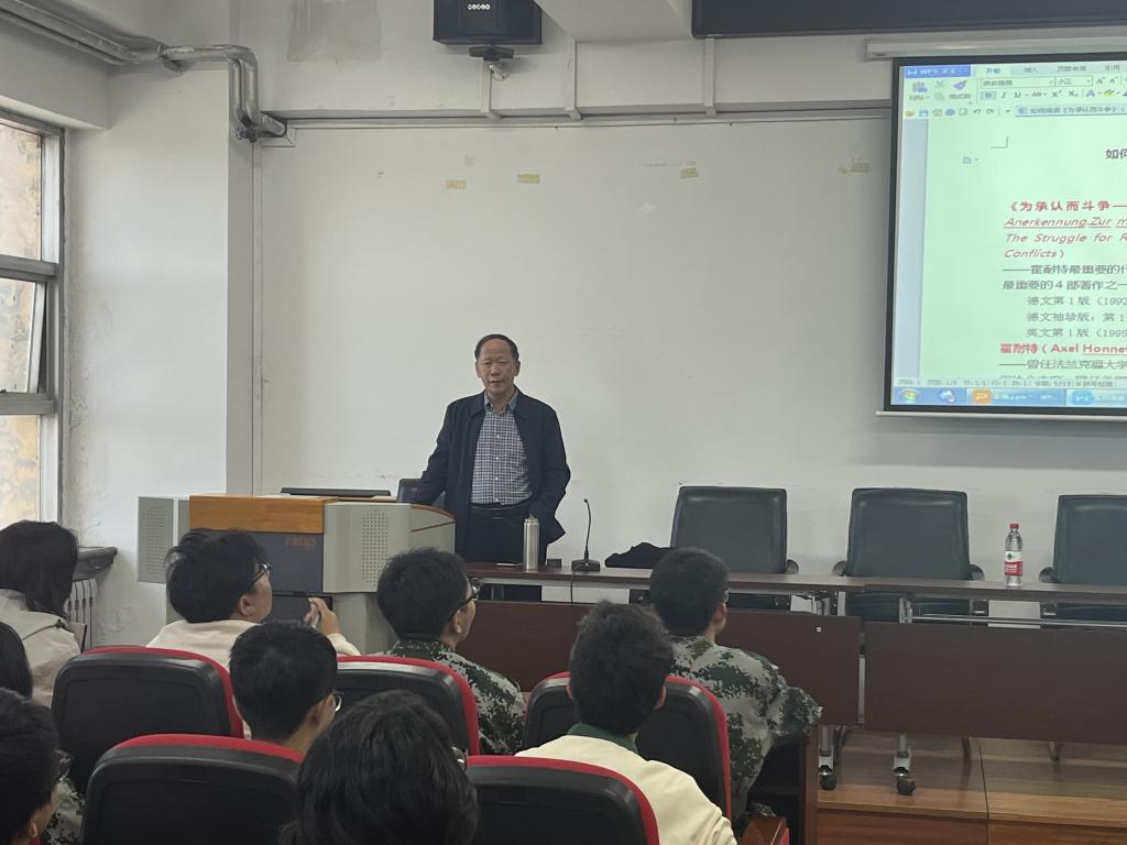 王凤才教授围绕对《启蒙辩证法》、《为承认而斗争》这两部著作的结构、核心问题和思想、理论意义以及历史评价等方面的梳理和研究展开讲座。他提出在学习哲学的过程中要注重理论积淀和视野的开拓,既要关注不同学者思想理论的共同点,还要重视理论之间的差异性。讲座过程中,王凤才教授以踏实厚重又不失幽默风趣的话语传递着知识,以人道主义的哲学立场影响着与会的每一位老师和同学。