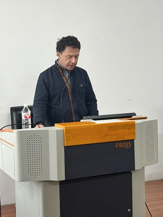 讲座由刘恩帅博士主持,讲座伊始向与会老师与同学介绍了乌里扬诺夫学者的主要学术方向及学术成果。乌里扬诺夫研究员主要从事中国古代文献研究,中国古典著作翻译,中国传统文化研究等,代表作有《岭外代答》(译著)、《诸蕃志》(译著)、《左传》(译著)、《竹书纪年》(译著)、《史记》《汉书》(部分章节,译著),发表重要论文20余篇。