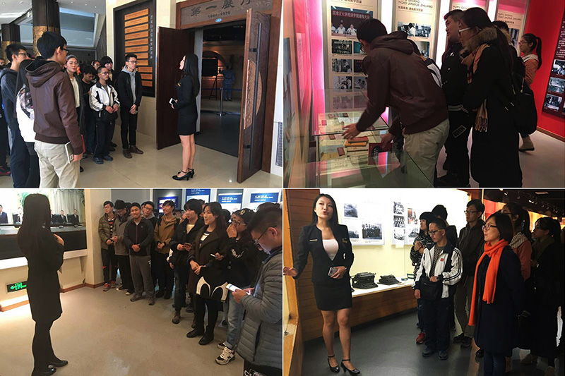 团委书记、辅导员黄影老师带领全体2016级新生参观了学校校史馆。