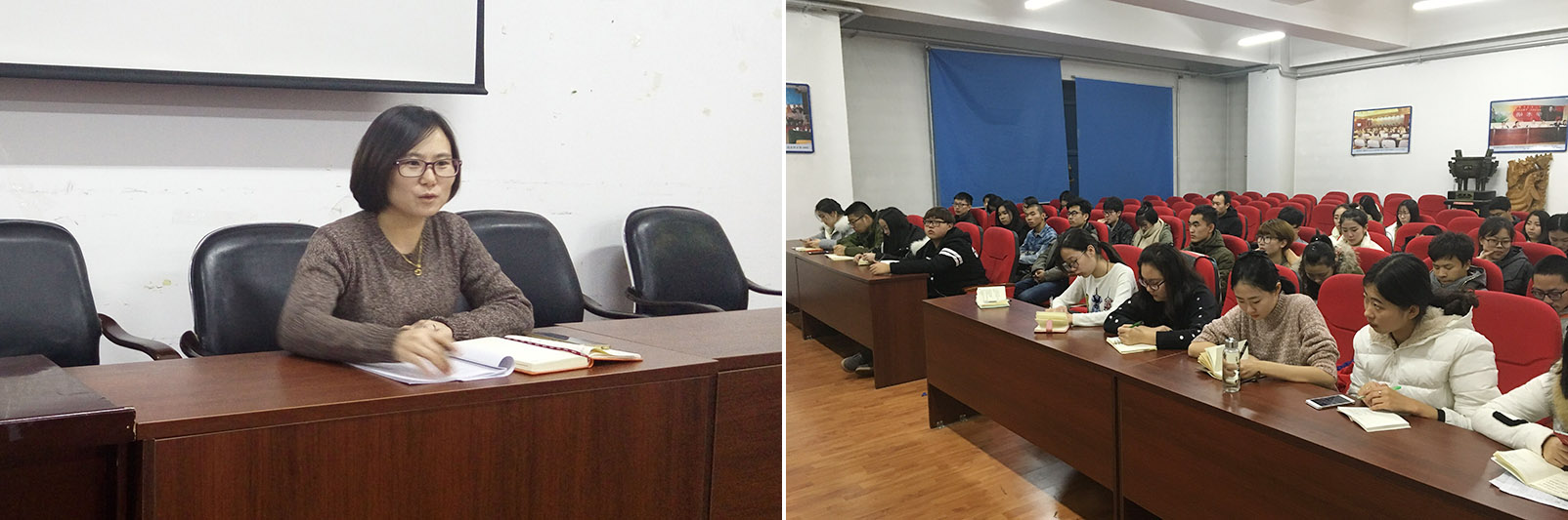“两学一做”学习教育——学生支部书记讲党课于汇文楼937室顺利开展。本次党课由学生党支部书记、辅导员黄影老师主讲。
