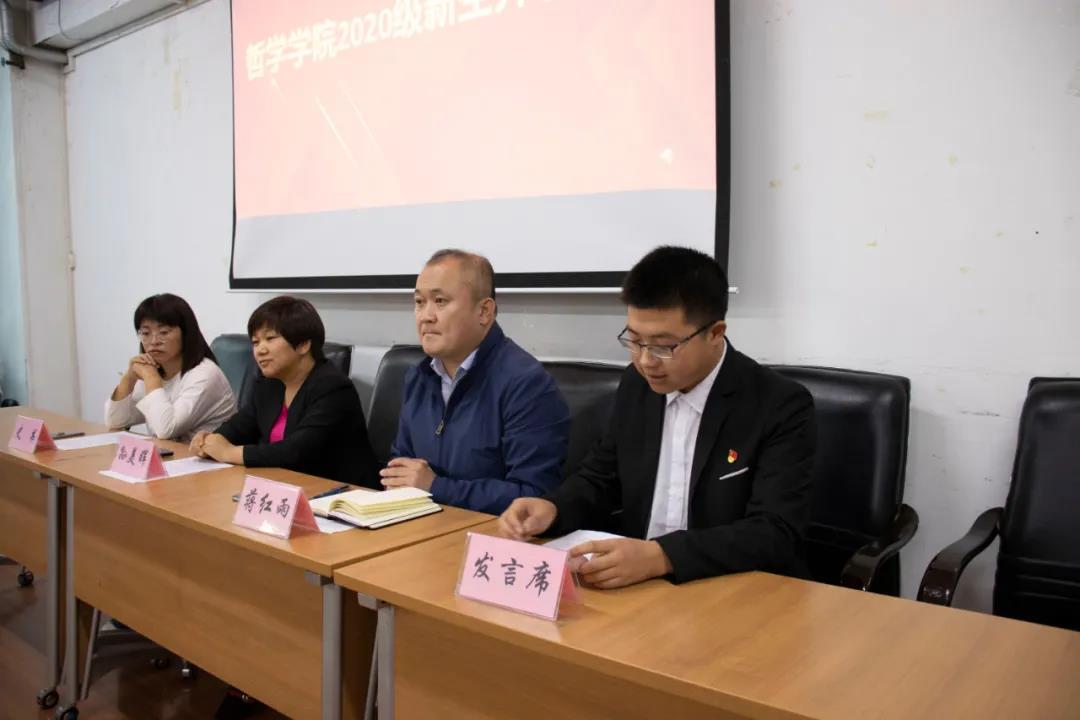 院长蒋红雨老师致辞,蒋老师指出,他在同学们的身上看到了新时代哲学学子的激情,希望各位同学能够将话语落实到行动上,以学习为中心,以成才为己任,成为一名有责任、有担当、有历史使命感的新青年。