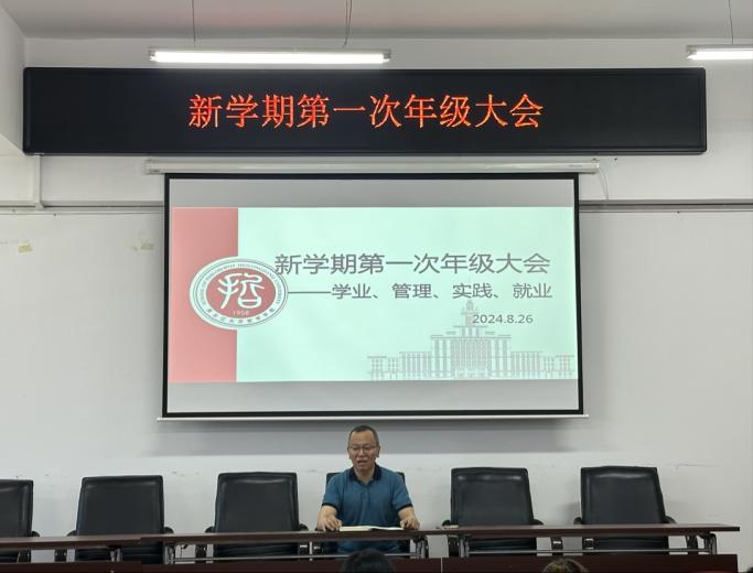 新学期,新气象。为进一步推动学生德智体美劳全方面发展,做好新学期规划,迎接新学期的到来。2024年8月26日,性爱视频 在汇文楼937召开新学期第一次年级大会。会议由2023级本科生正处级辅导员孙庆斌老师主讲,2023级全体本科生参加。