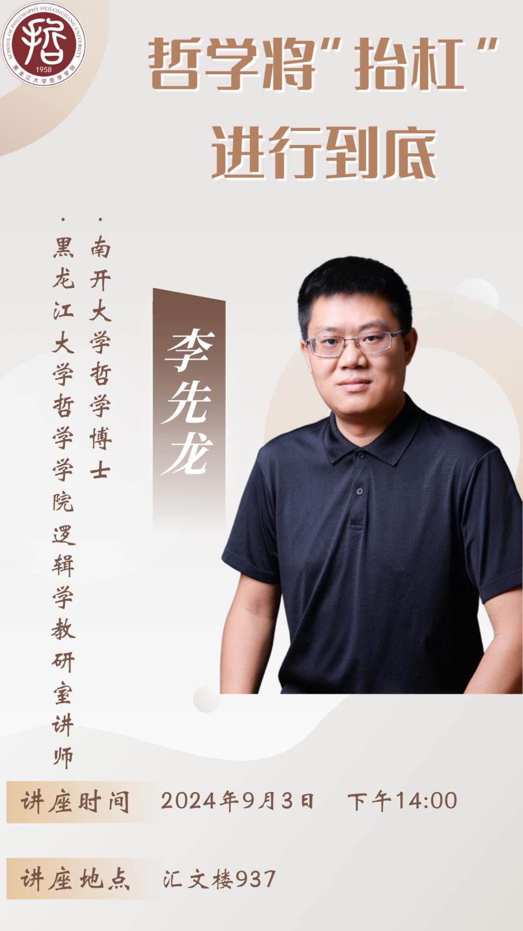 李先龙老师于2024年9月3日在汇文楼937会议室,成功举办了“哲学与生涯成长”系列主题教育培训之《哲学:将‘抬杠’进行到底》专题讲座。