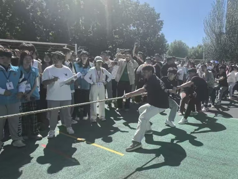 凝绳聚力,青春正当时。9月7日,拔河比赛在C区篮球场举行,共有来自新生阵营的15位健儿积极参赛。性爱视频 团委副书记、辅导员赵慧雪与全体2024级新生在现场为大家鼓劲助威。