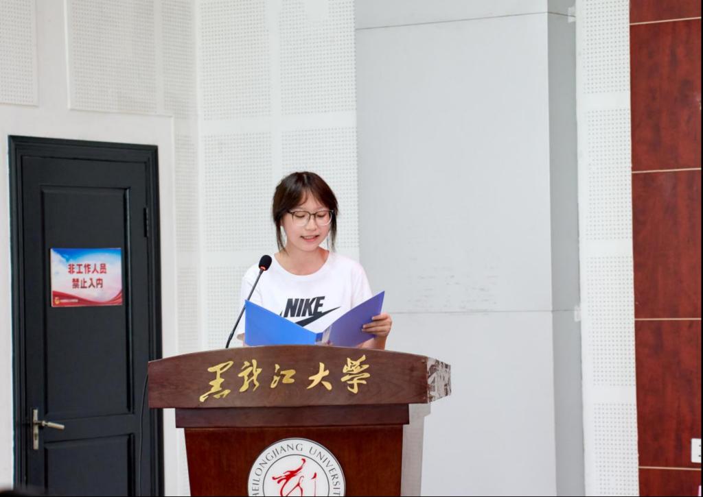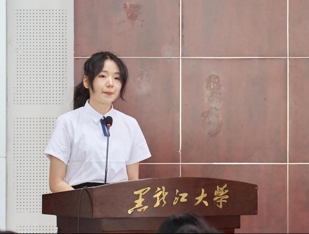 2025级应用伦理专业王艺媛同学代表研究生新生发言,她在发言中首先表达了踏入学术新阶段的欣喜与敬畏之情,并对家人的支持与学院的培养致以衷心感谢。她表示研究生不仅是知识的学习者,更应成为思想的探索者、价值的判断者和未来的建设者。她代表全体新生表示,将以马克思主义为指导,提升理论素养与思辨能力;未来会不负师恩与亲情,在黑大深耕“爱智慧”领域,以实干书写青春,为学院添彩。