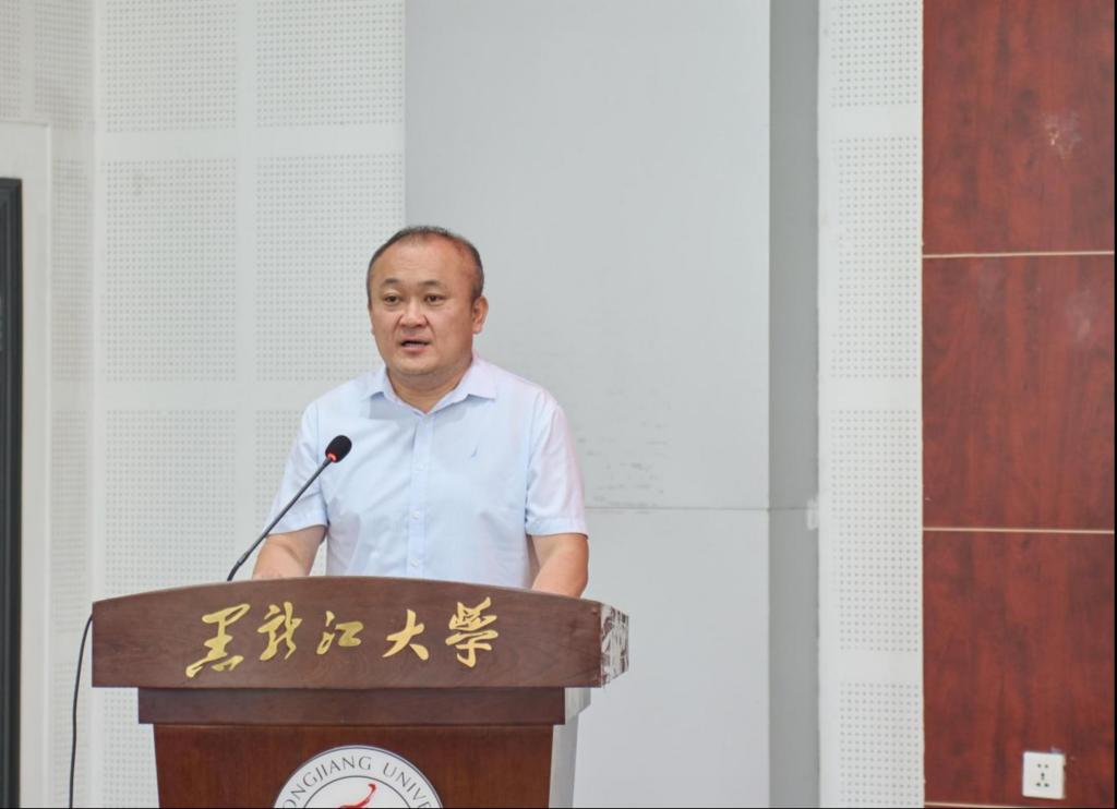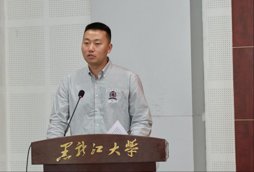 哈尔滨工程大学马克思主义学院教师高清宇代表校友致辞,他深情回顾了13年前在黑大的求学时光:在汇文楼聆听老师讲授三大哲学史,往返于新旧图书馆查阅资料,在体育馆与老师们打球挥汗,在家属区咖啡馆碰撞思想火花,记忆仍清晰。他分享学业经历,本科毕业后保研南京大学,考入人大读博,坦言人生与学术进步离不开黑大哲学的滋养,还提及学院领导曾赴南京、北京看望校友,让他倍感温暖。最后,他寄语新生:"未经审视的人生是不值得过的"这句苏格拉底名言,以哲学理解生命本质、拓宽格局;发扬“爱智致用,批判创新”精神,刻苦钻研,成长为堪当民族复兴大任的时代新人。