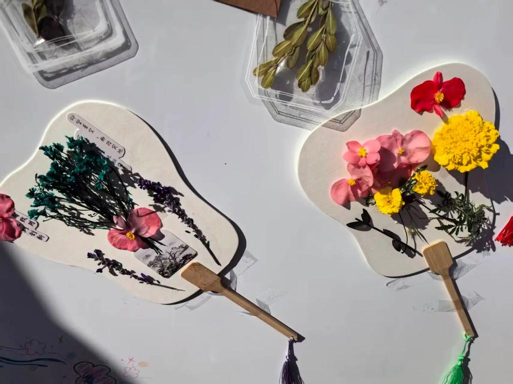 活动现场氛围温馨热烈,同学们在传统团扇上点缀秋色干花,于方寸折纸间展现指尖匠心,在卡纸上涂出属于自己情感的颜色,以缤纷彩绘传递情感温度,让千年雅韵在现代校园中焕发新生,让融融暖意流淌于每一个参与者的心间。