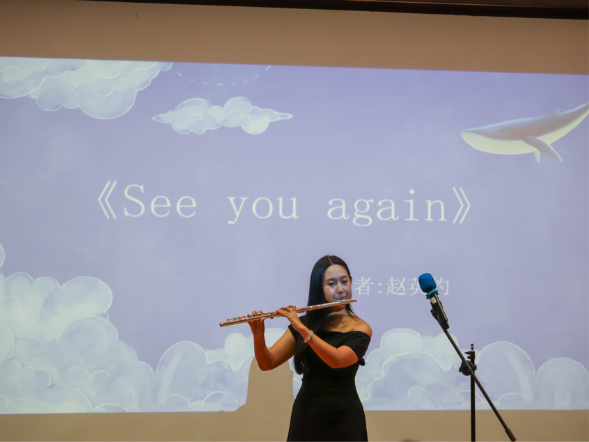 赵英灼带来长笛独奏《See you again》,温柔旋律流淌其间,音符里藏着对过往的致敬与初遇的期许,浪漫氛围包裹全场,让现场逐渐沉静在悠扬乐声中。