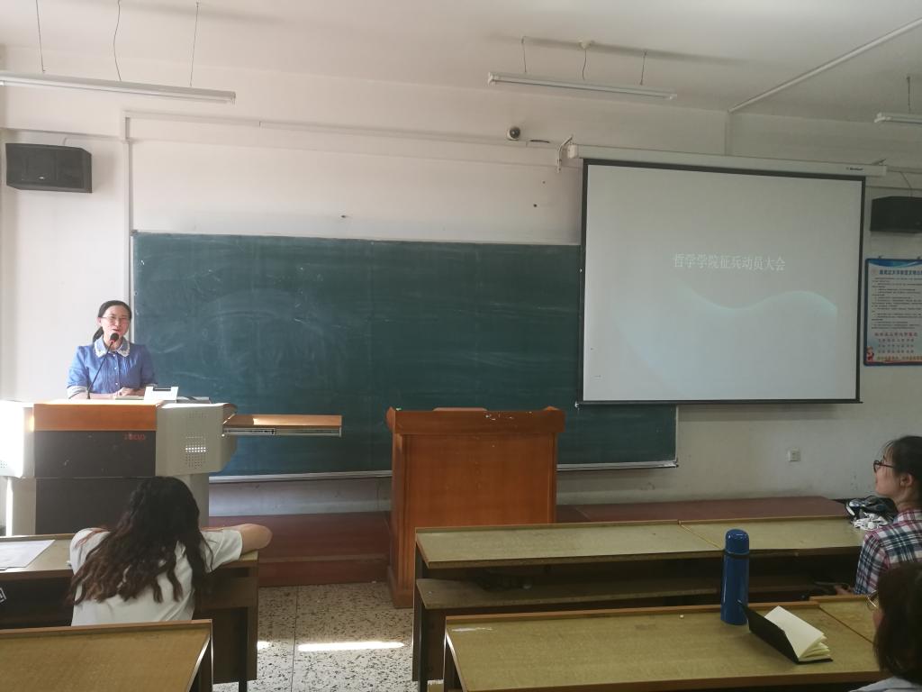 2018年征兵工作动员大会在汇文楼451顺利召开,本次会议由学院团委书记、辅导员黄影老师主持,团委副书记、辅导员张博伦老师和全体学生参加了本次大会。