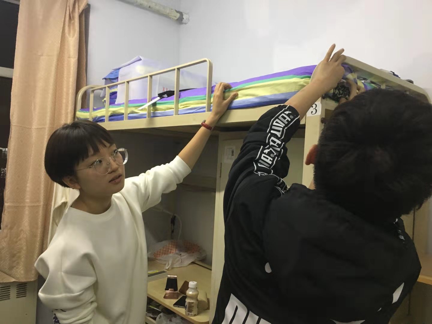 张老师来到寝室受到了新同学们的热烈欢迎。张老师亲切询问同学们对新环境的适应情况,对同学们的饮食起居表示关心,嘱咐同学们要积极融入大学生活,和室友友好相处,在接下的学习中遇到问题要积极主动的请教老师,寝室内一同努力,共同创建文明和谐的寝室文化。