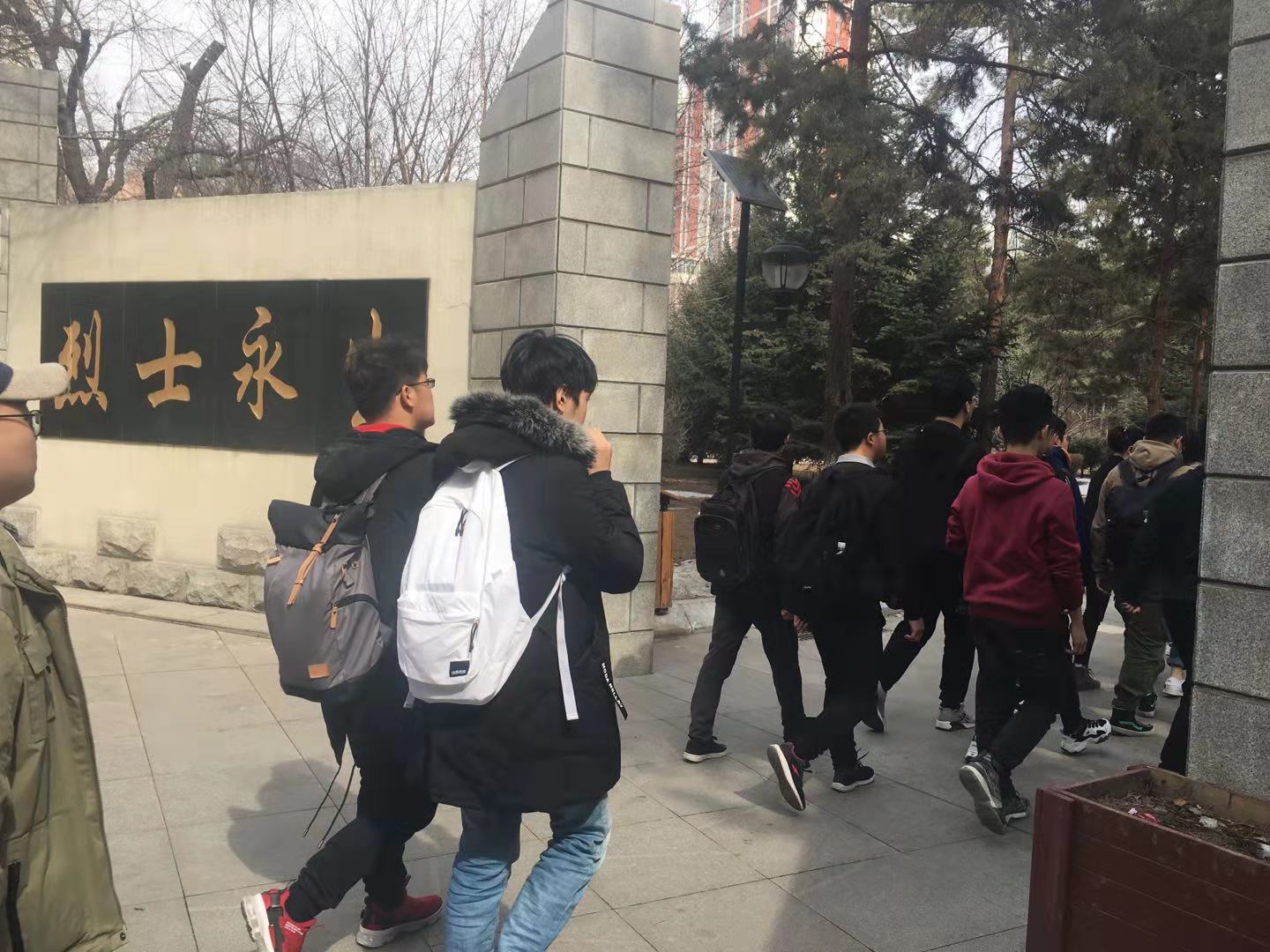 学生在组织下来到哈尔滨烈士陵园举行清明祭扫活动。活动由学生辅导员张博伦老师主持。