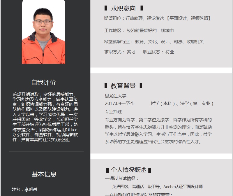学院党总支秘书黄影老师,团委书记张博伦老师担任了本次大赛评委。活动中,同学们纷纷积极报名,踊跃参与学院共收到来自各个年级30余份简历,参赛作品内容完整、格式清晰、版面大方美观、创意新颖,能充分体现专业特色,展现个性魅力,能吸引用人单位的注意。评审老师从简历的美观设计、结构布置、内容选择等多方面对上交的作品进行了严格的筛选,最终挑选出10份优秀简历。