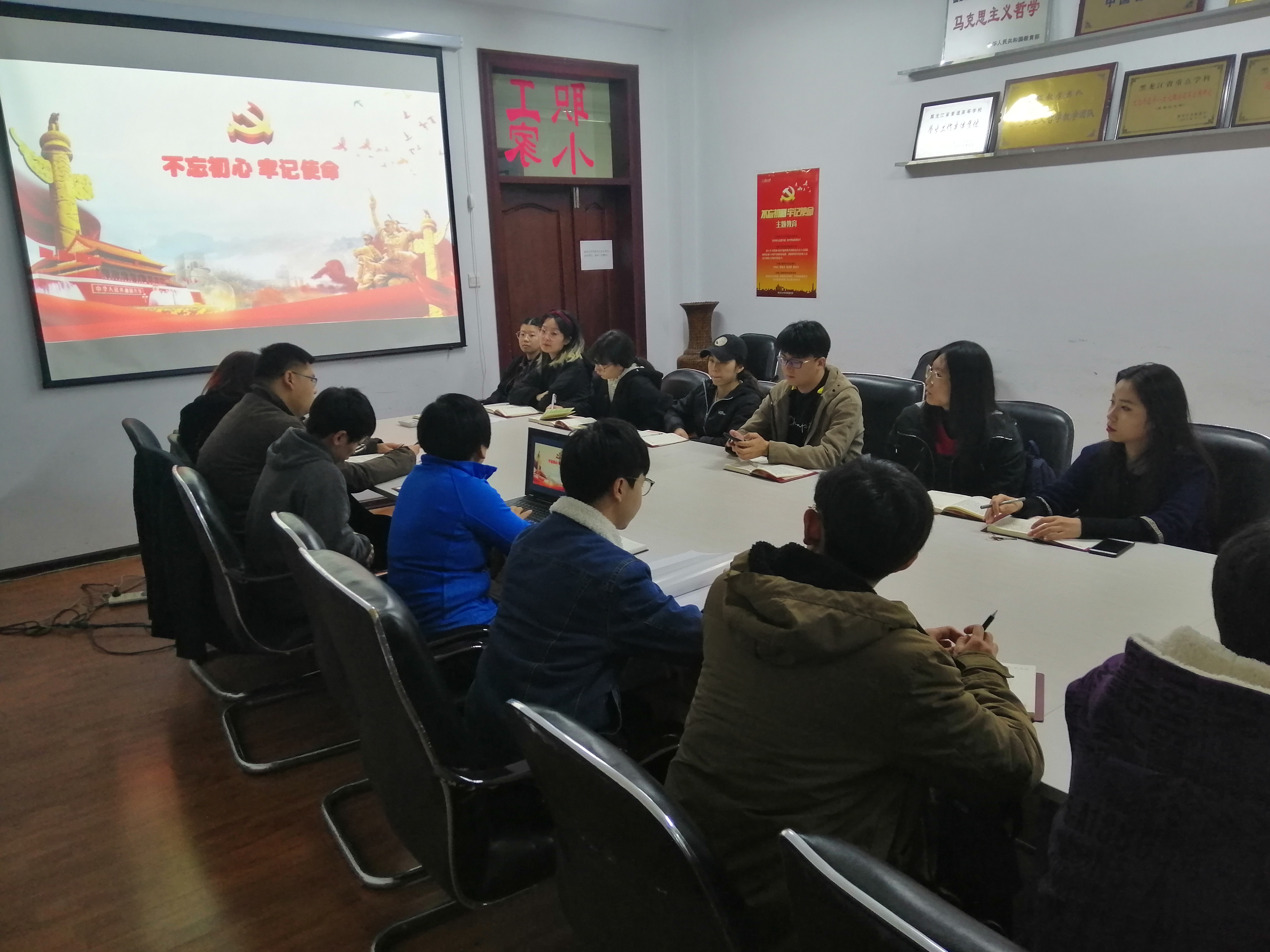 党总支书记孙美晖在汇文楼922为学院学生党支部全体学生党员作了题为《不忘初心,牢记使命,坚定理想信念》的专题党课。