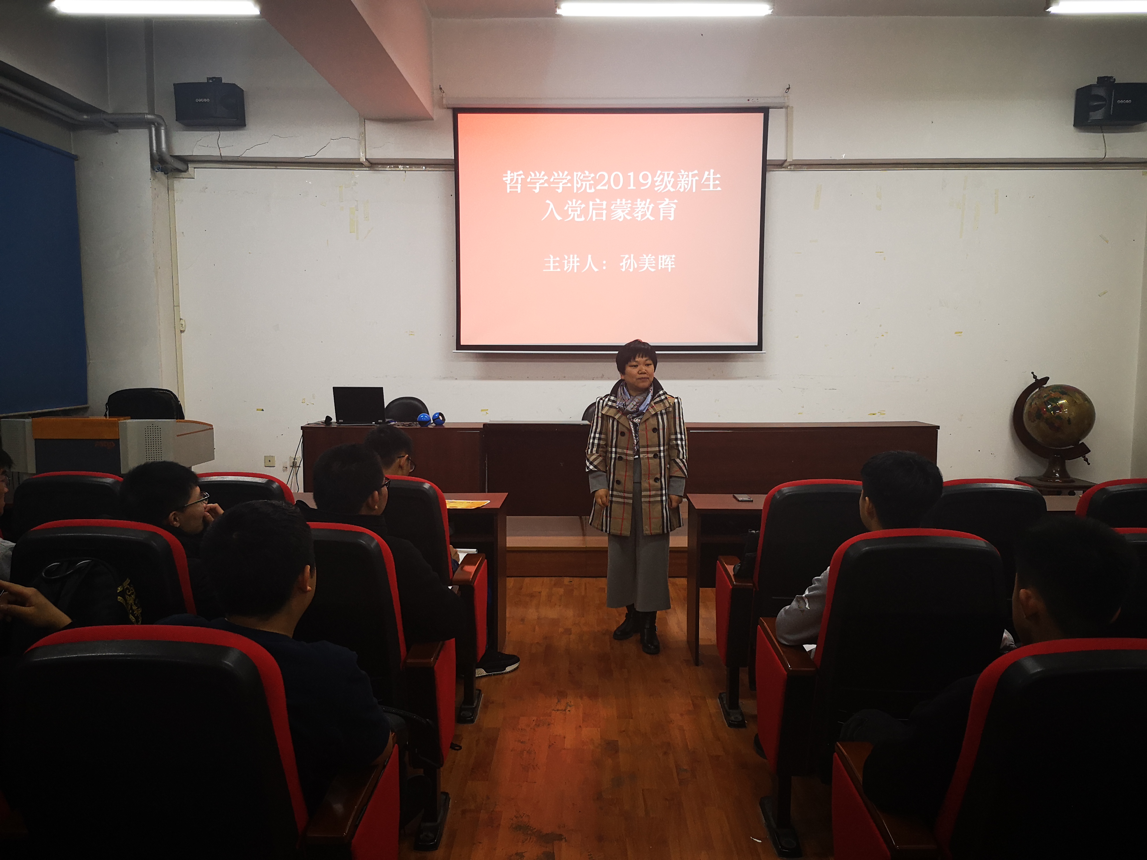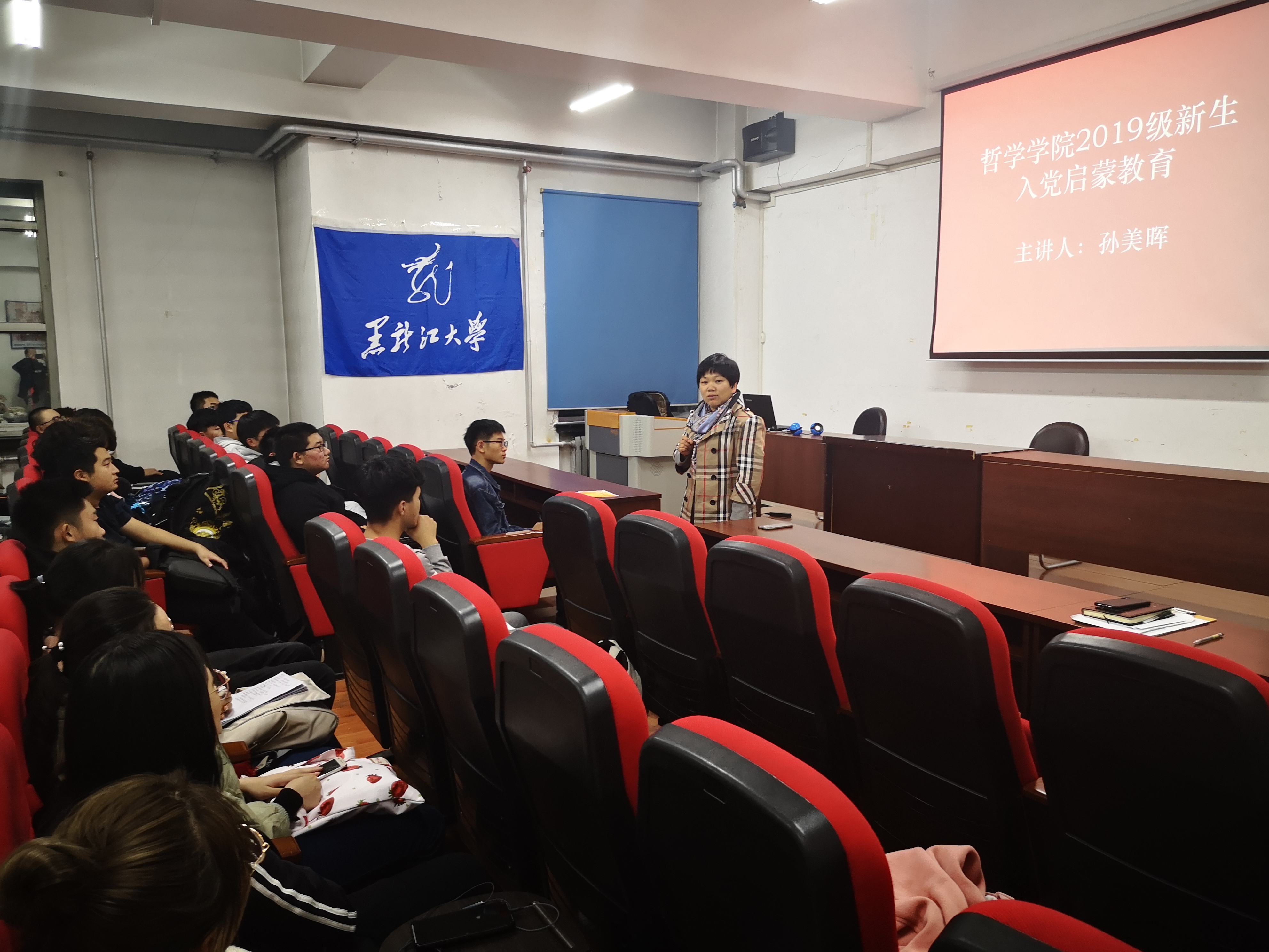 在学生入党比率历史上的新高。孙老师的发言激起了大家的热情,全场掌声阵阵,19级新生那份青春激扬的热情直冲穹顶。