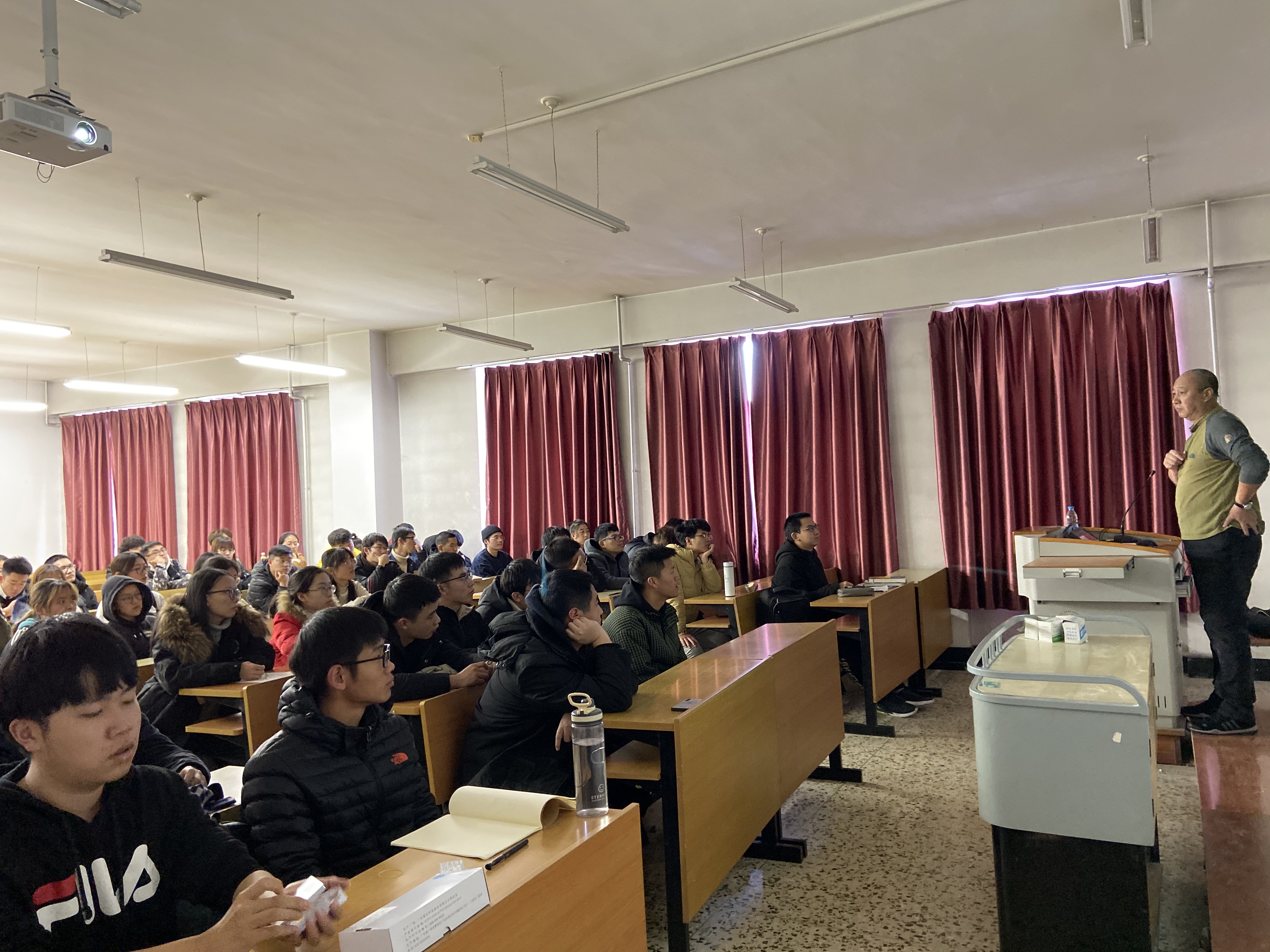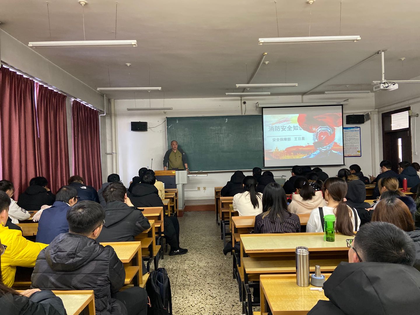 首先,王日晨老师像我们介绍了我校存在的一些安全风险和安全防范措施,并具体告知了学生们一些注意事项,之后围绕火灾案例、消防器材的使用、初期火灾的形成和扑救、火场逃生的小窍门等几个方面的内容对同学们进行讲解。培训采取图文并茂的形式,以新闻报道、案例分析、现场说法等多种形式讲解了近年来的哈尔滨发生的多起重大火灾事故案例。这些视频图文对学生们造成极大的心灵震撼,让大家深刻认识到“防火胜于救火,减灾胜于抢险”。此外,王日晨老师还结合生活案例与同学们交流防火经验,分析了火灾发生时我们如何应对,才能最大限度的减少人员伤亡和财产损失。