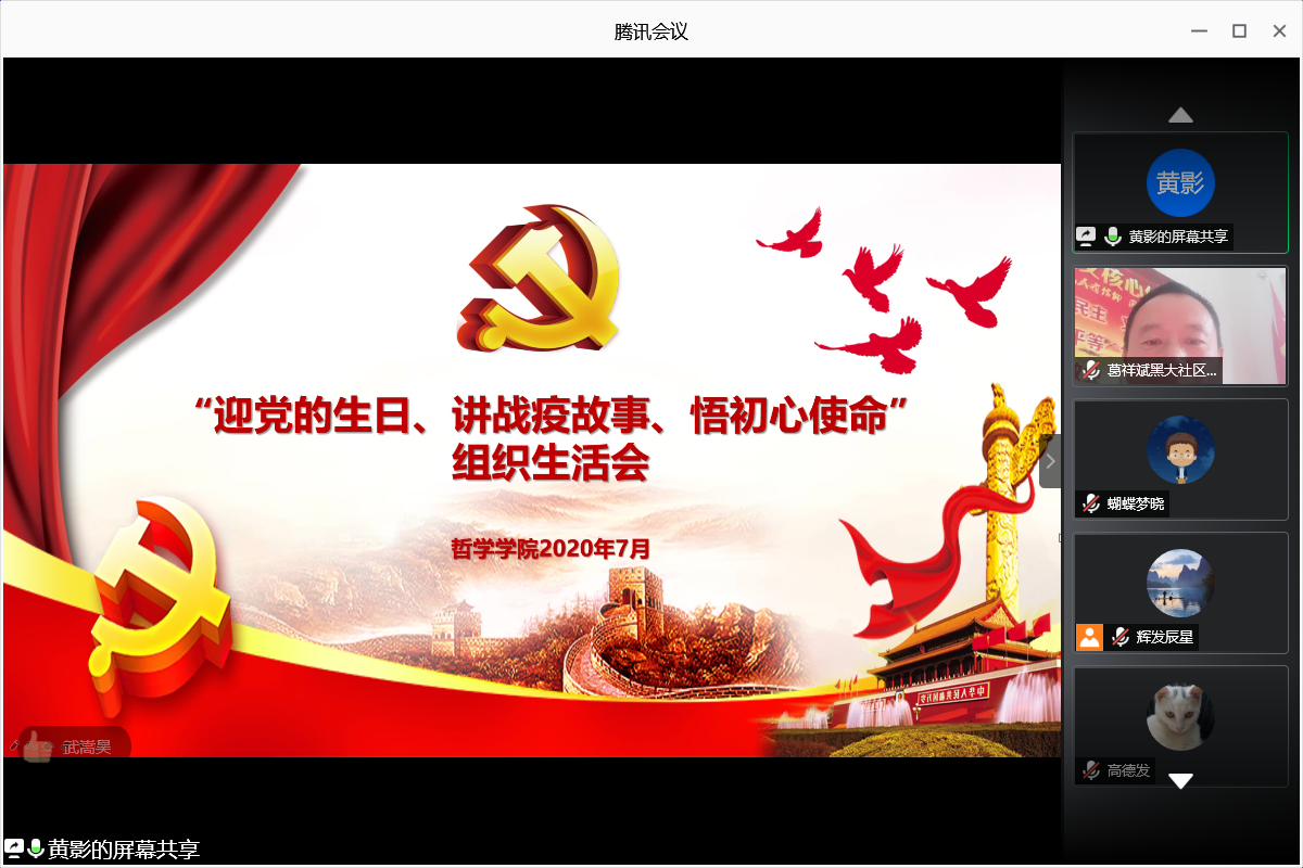 党总支于2020年7月15日面向全体师生党员召开了线上“讲战疫故事、悟初心使命”组织生活会。