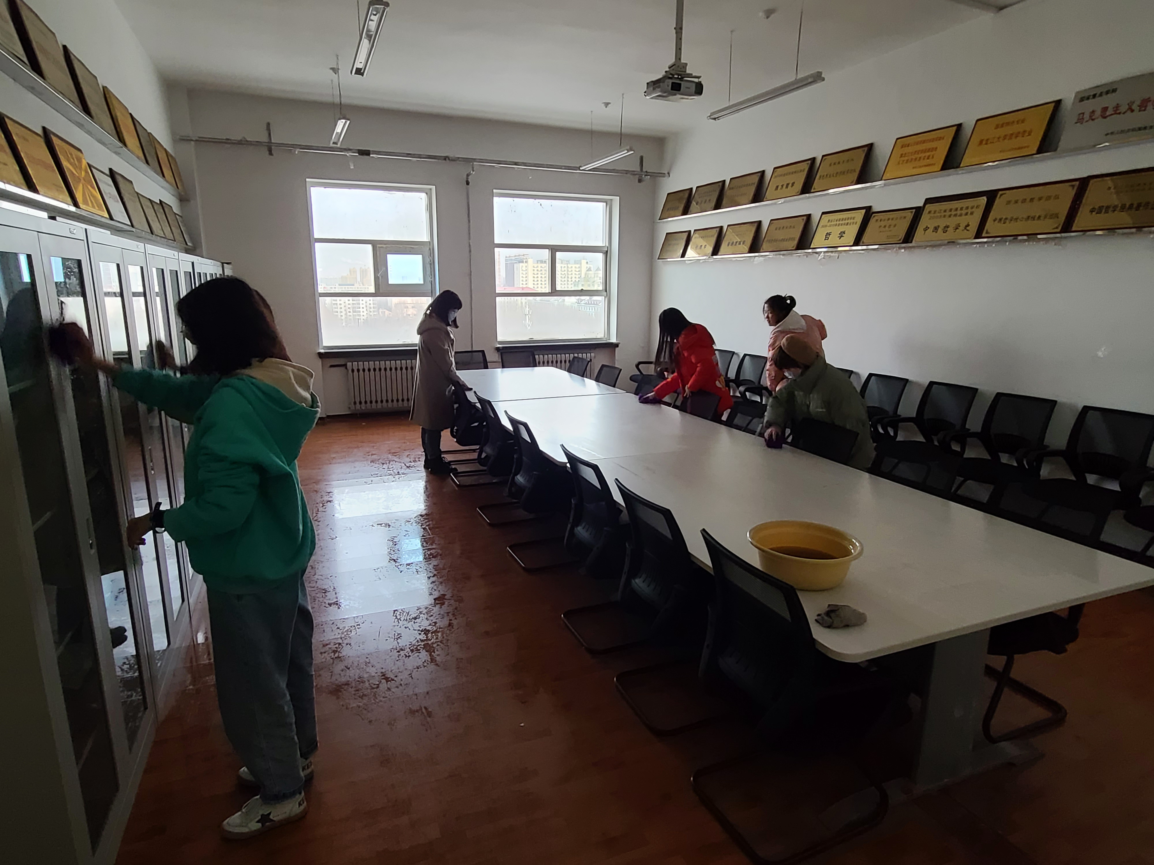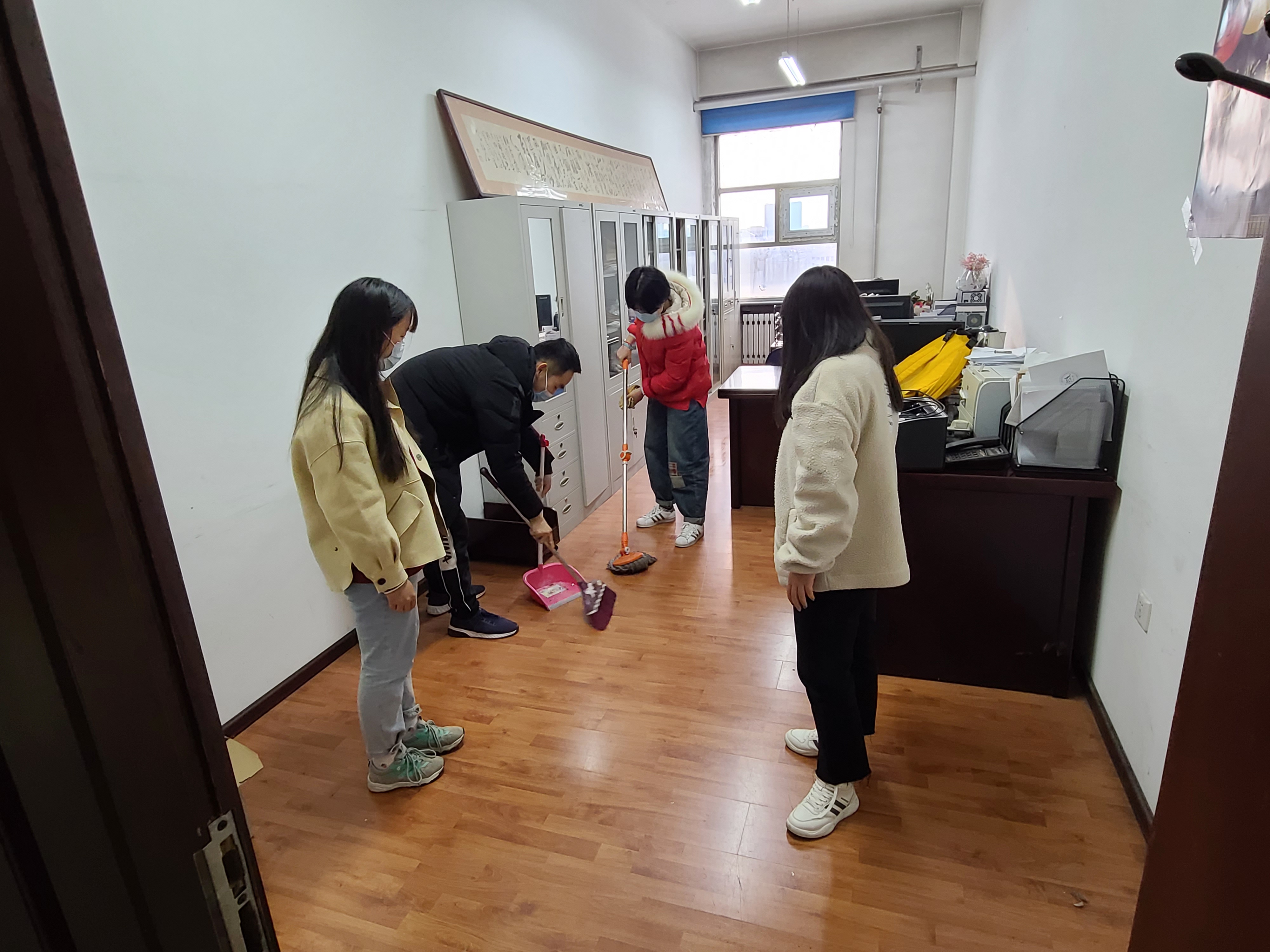 在活动中,主要组织学院青年志愿者针对汇文楼部分教室办公场所的卫生进行了清洁工作,同学们认真拖地扫地,将杂物分类码放整齐,充分表现了性爱视频