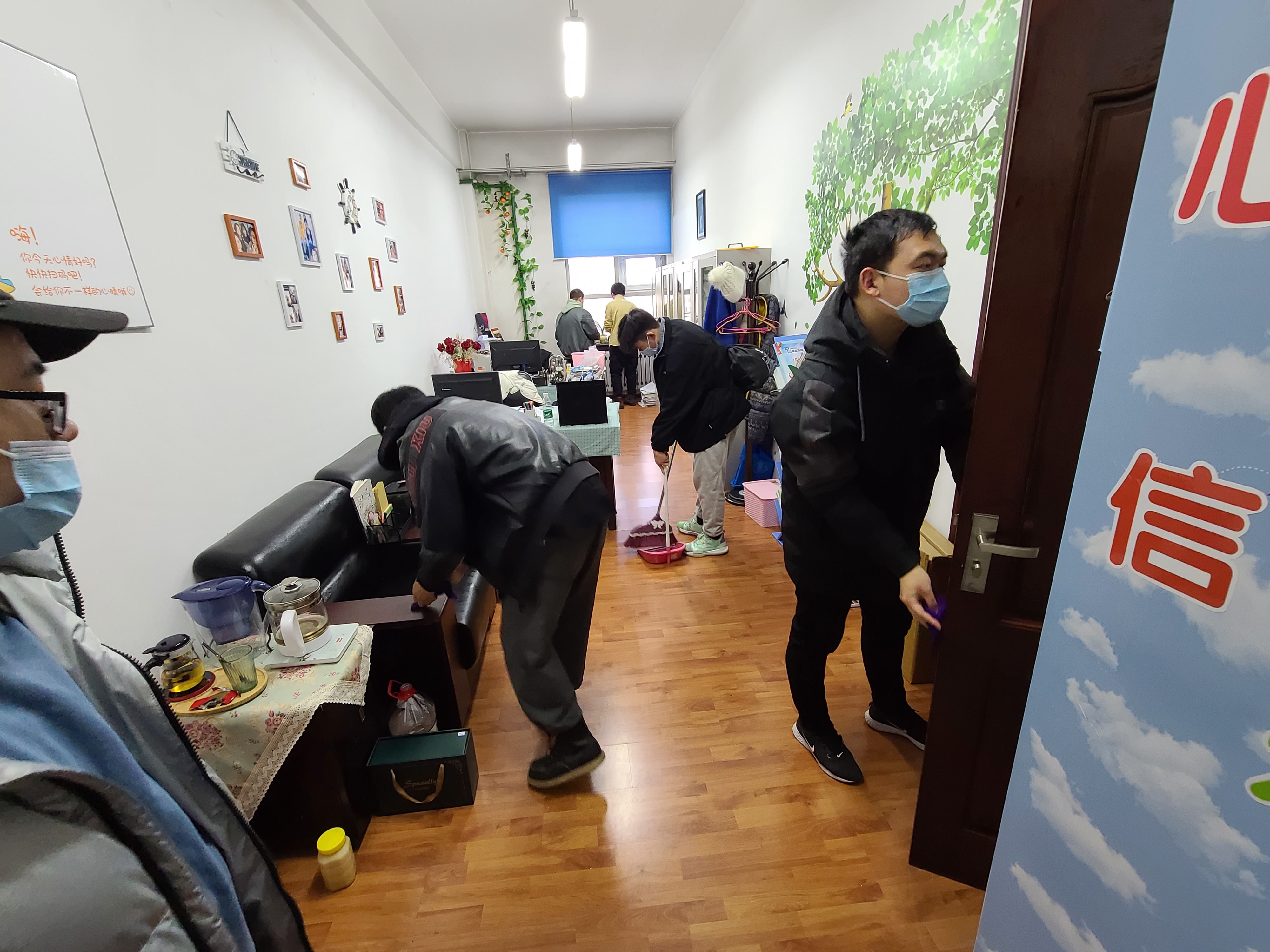 组织各年级志愿者于2021年3月10日下午前往汇文楼9楼清理学院办公区、教学区,开展清扫整理学院办公区、教学区主题志愿服务活动。