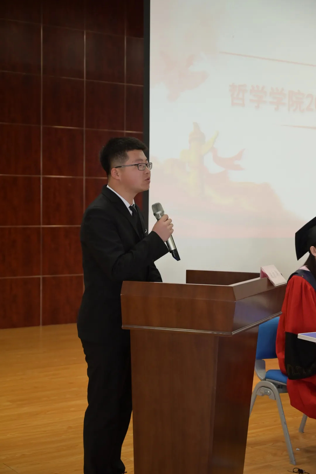 典礼第五项,毕业生代表梁成德同学代表毕业生讲话。