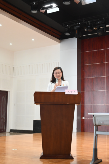 典礼第六项,周晓莹老师代表全体教师讲话。