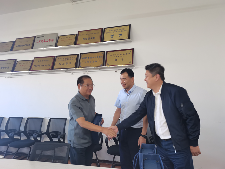 吴华洋处长代表学校详细地询问了柴文华教授的科研和身体情况,对关健英教授获得的国家社科基金重大项目表示祝贺,对魏义霞教授获得的省级教学名师奖等多项荣誉称号表示祝贺。