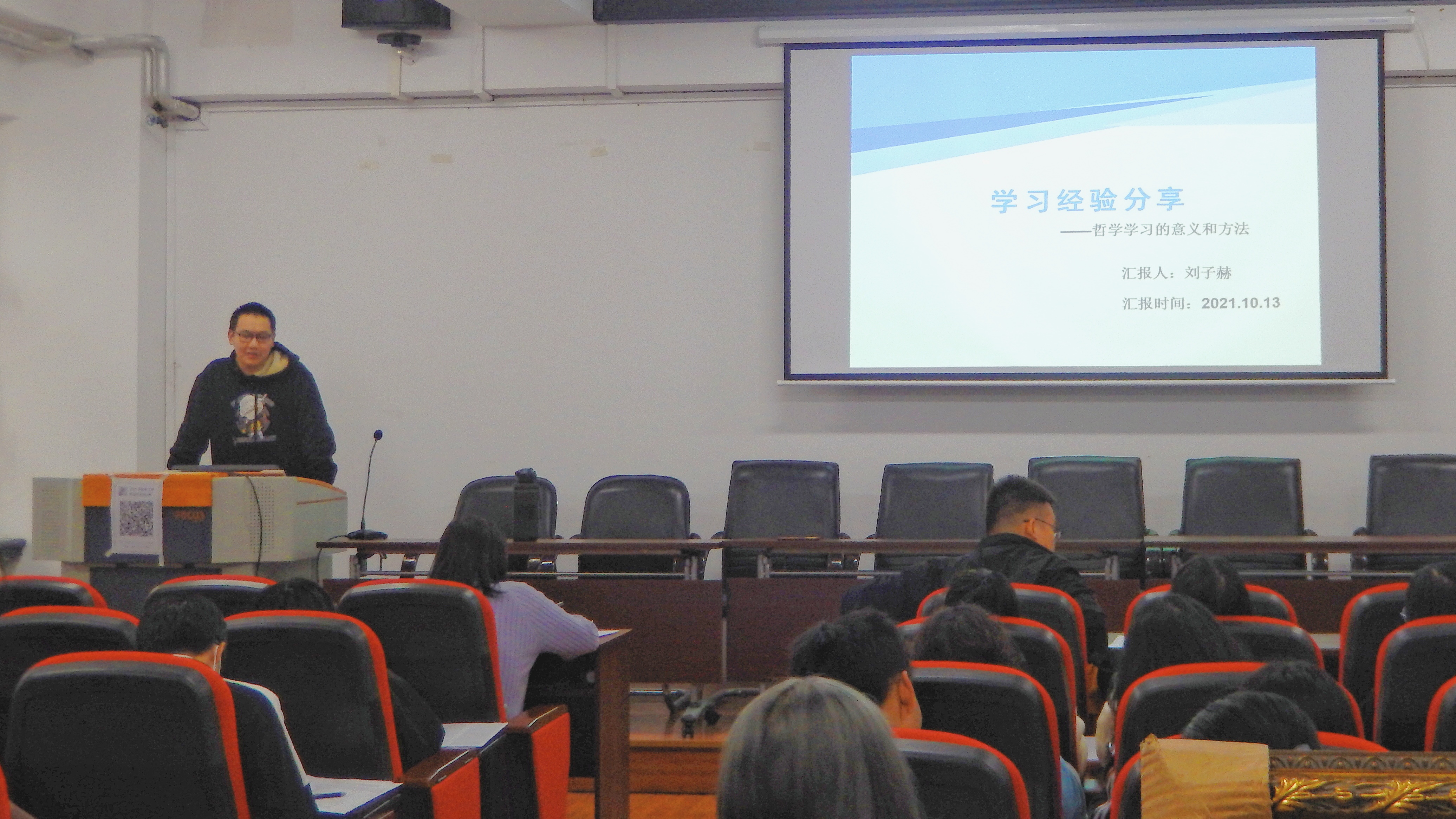 2021级新生对专业学习及大学未来四年学习生涯的理解,2021年10月13日,学院邀请优秀在校学生为大家开展“哲学学习的意义和方法”线下交流会。新生辅导员焦瑞老师主持会议,全体新生参加。