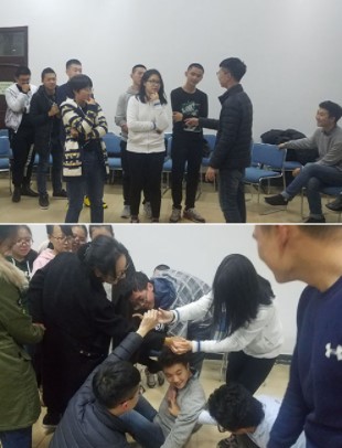 “心有千千结”将活动推向了高潮。“心有千千结”让大家看到了团队的力量,更让大家学会了要尝试着用新的角度去看待问题。生活当中也有许多“结”,只要想办法,总可以解决问题。活动最后,每一位同学都用真诚质朴的语言表达了自己的感受与体会。