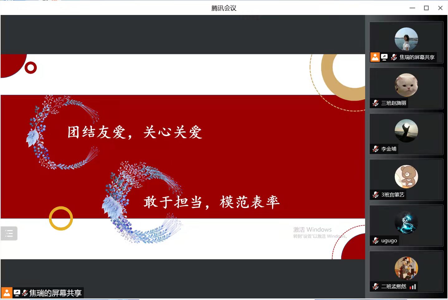 最后,老师从新学期“学风建设、生活方面、疫情防控、德体美劳”四个方面对大家提出要求,在学习方面,强调新学期同学们应继续秉持“踏实刻苦,严谨认真”的良好学习习惯,遵守学校纪律,维持良好考风考纪,争取在新学期取得更好的成绩;在生活方面,同学们也要继续保持寝室良好卫生环境,以学生干部及入党积极分子等先锋模范为榜样,做好日常的青年大学习任务及疫情防控措施,促进新学期学习生活顺利健康开展;在德体美劳方面,鼓励同学们在努力学习的同时,积极参与学校丰富的文体活动,德智体美劳全面发展。