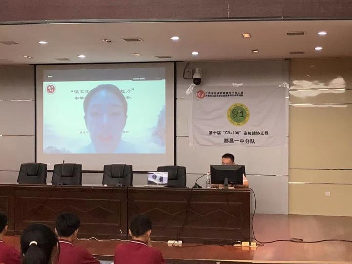 在讲座末尾,同学们与各位主讲的老师和宣讲学生进行互动交流,每一位老师和宣讲团成员给予了耐心的回答。习近平总书记强调:“博大精深的中华文明是中华民族独特的精神标识,是当代中国文化的根基,也是中国当代创新的宝藏。”本次讲座从中国历史、中国哲学、中国思想等多重维度出发,运用中英双语对中国传统文化进行深入介绍,为都昌一中学子带来了一场中华优秀传统文化的盛宴。最后,讲座在都昌一中同学们的热烈掌声中结束。